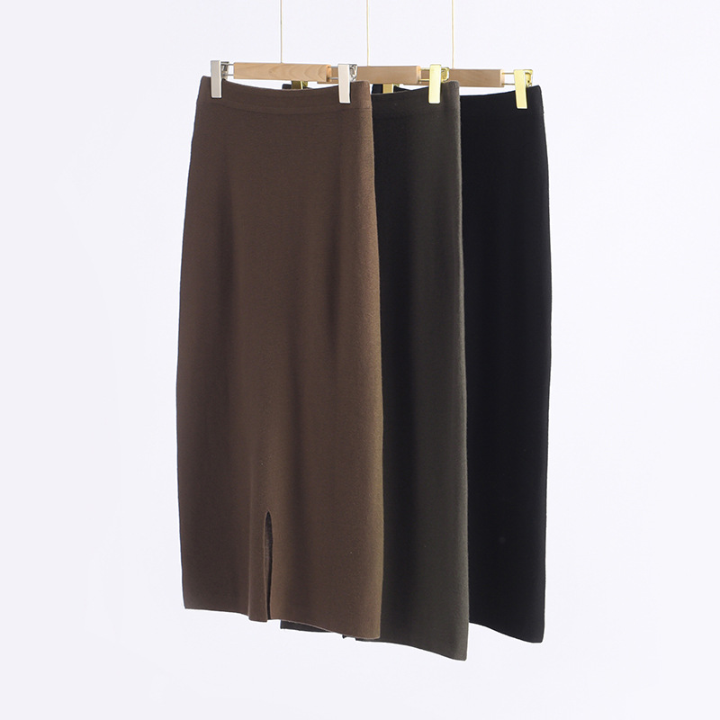 100ウールスカートレディース厚みのある秋冬新作ハイウエストスリムカシミヤニットスカートヒップカバーワンステップスカート