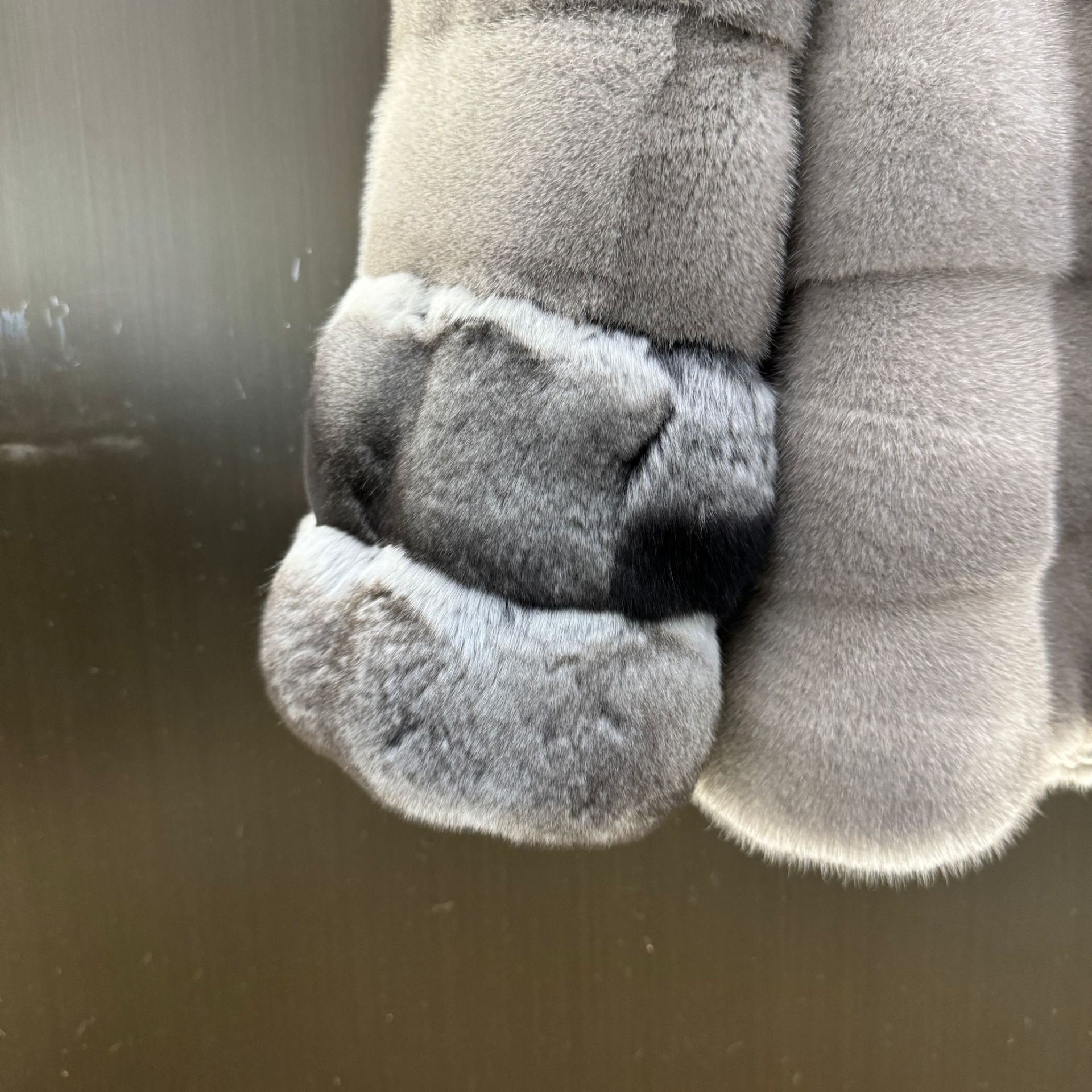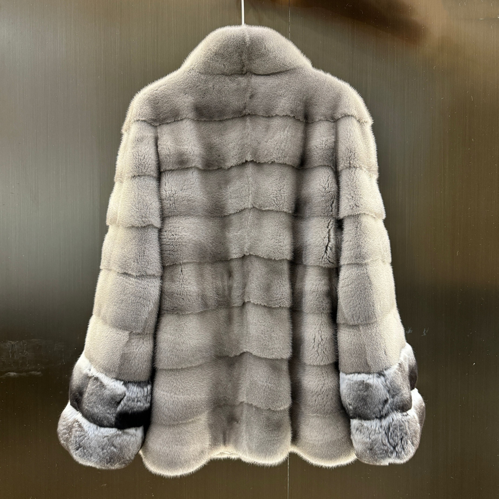 2025新款海宁天鹅绒整貂皮草外套女拼接龙猫袖口时尚气质女冬大衣