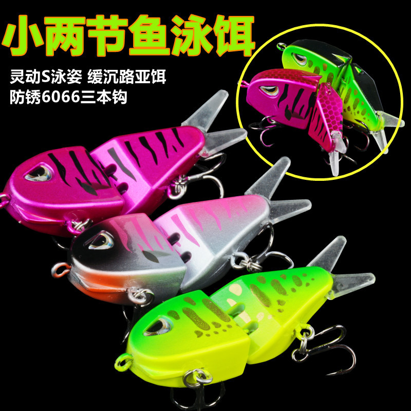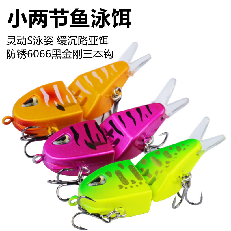 新款路亚饵假饵多节鱼炫彩双钩小号泳饵60mm钓鱼翘嘴鲈鱼鱼饵渔具