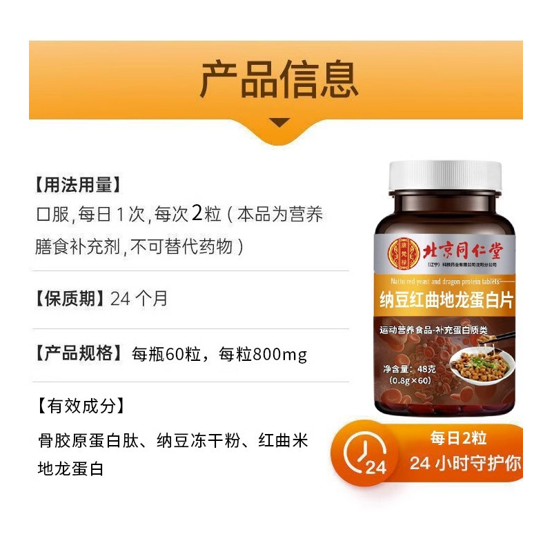 北京同仁堂納豆紅曲地龍蛋白片補充タンパク質運動栄養食品携帯卸売り