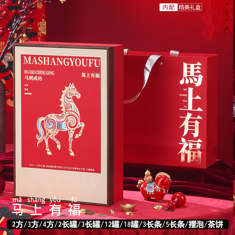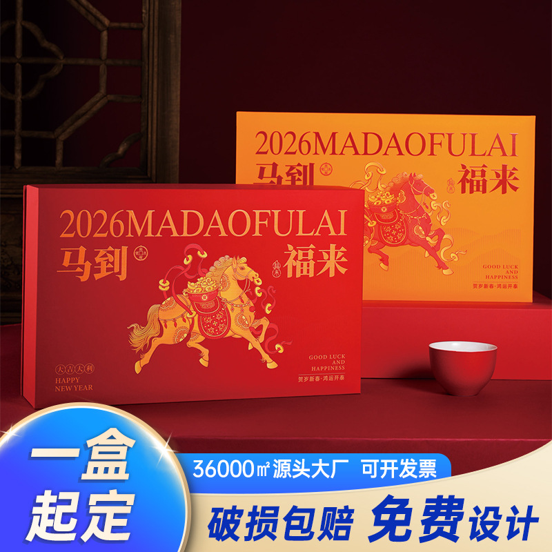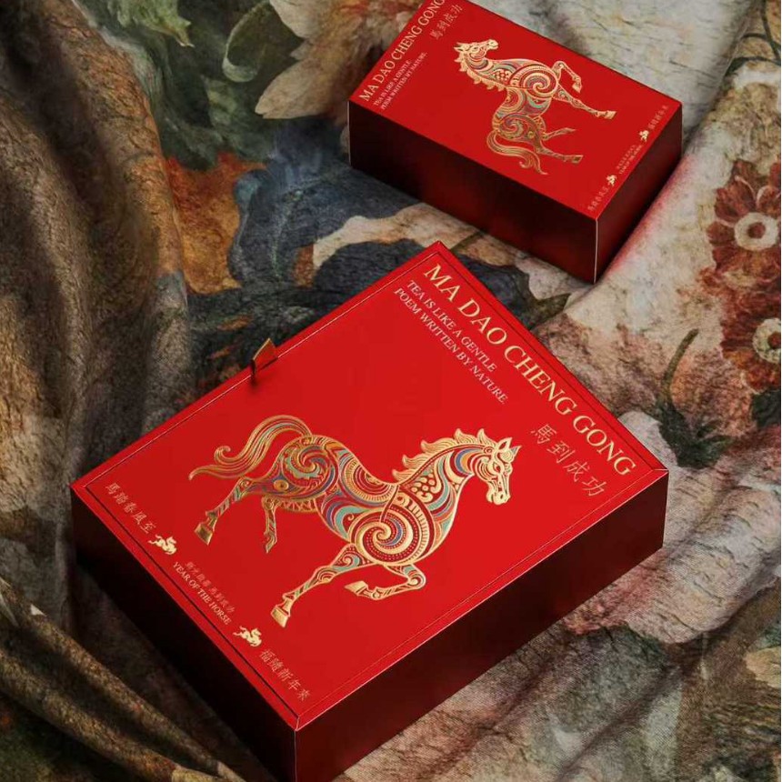 26春节马到成功包装盒普洱茶肉桂岩茶红茶礼品通用空礼盒定 制