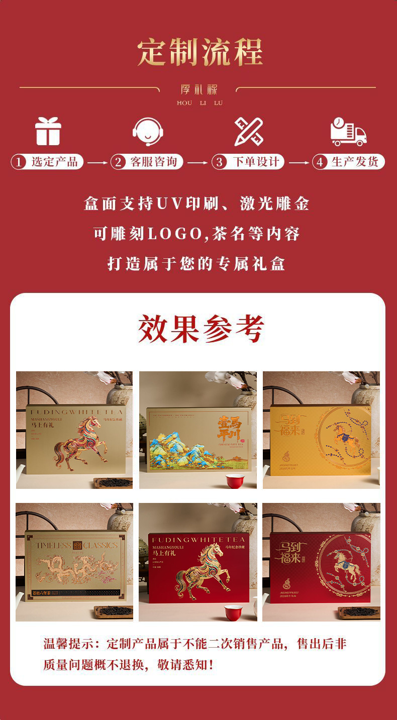 规格 【纯色无图】30泡-红色(空盒),【纯色无图】30泡-香槟色(空盒),【纯色无图】30泡-贵族金(空盒),【主图款-马到福来】可改字-贵族金(空盒),【主图款-福鼎白茶】可改字-香槟色(空盒),【主图款-福鼎白茶】可改字-红色(空盒)