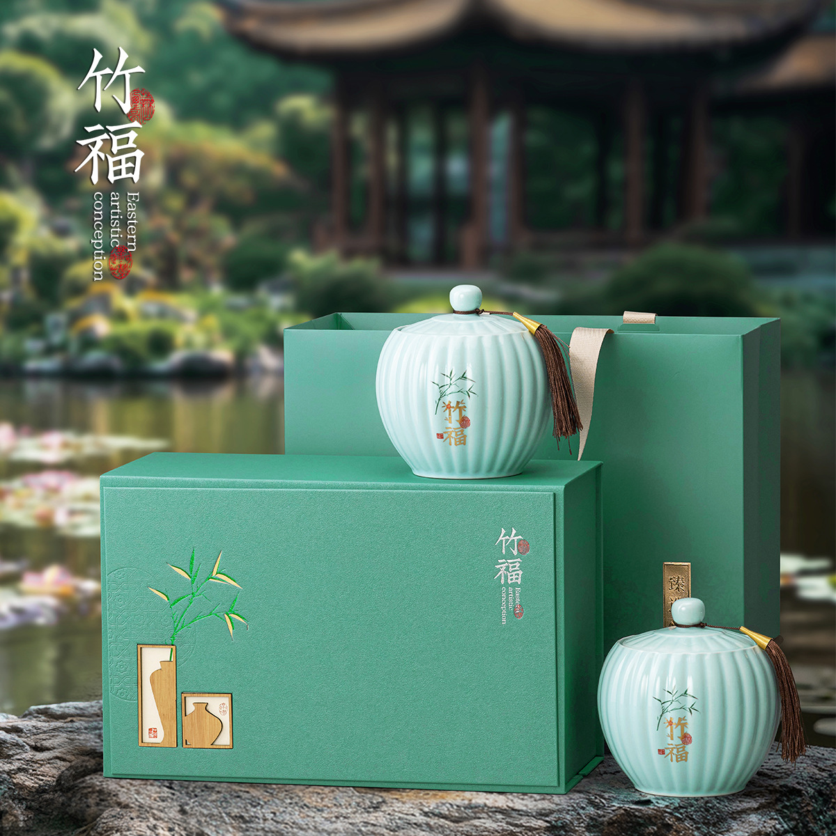 高档半斤茶叶罐瓷罐礼盒通用碧螺春龙井茶茶叶包装盒春茶绿茶礼盒