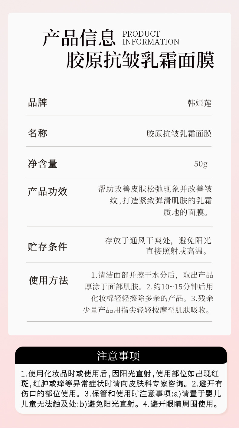产品名称 HANJILIAN韩姬莲胶原抗皱乳霜面膜