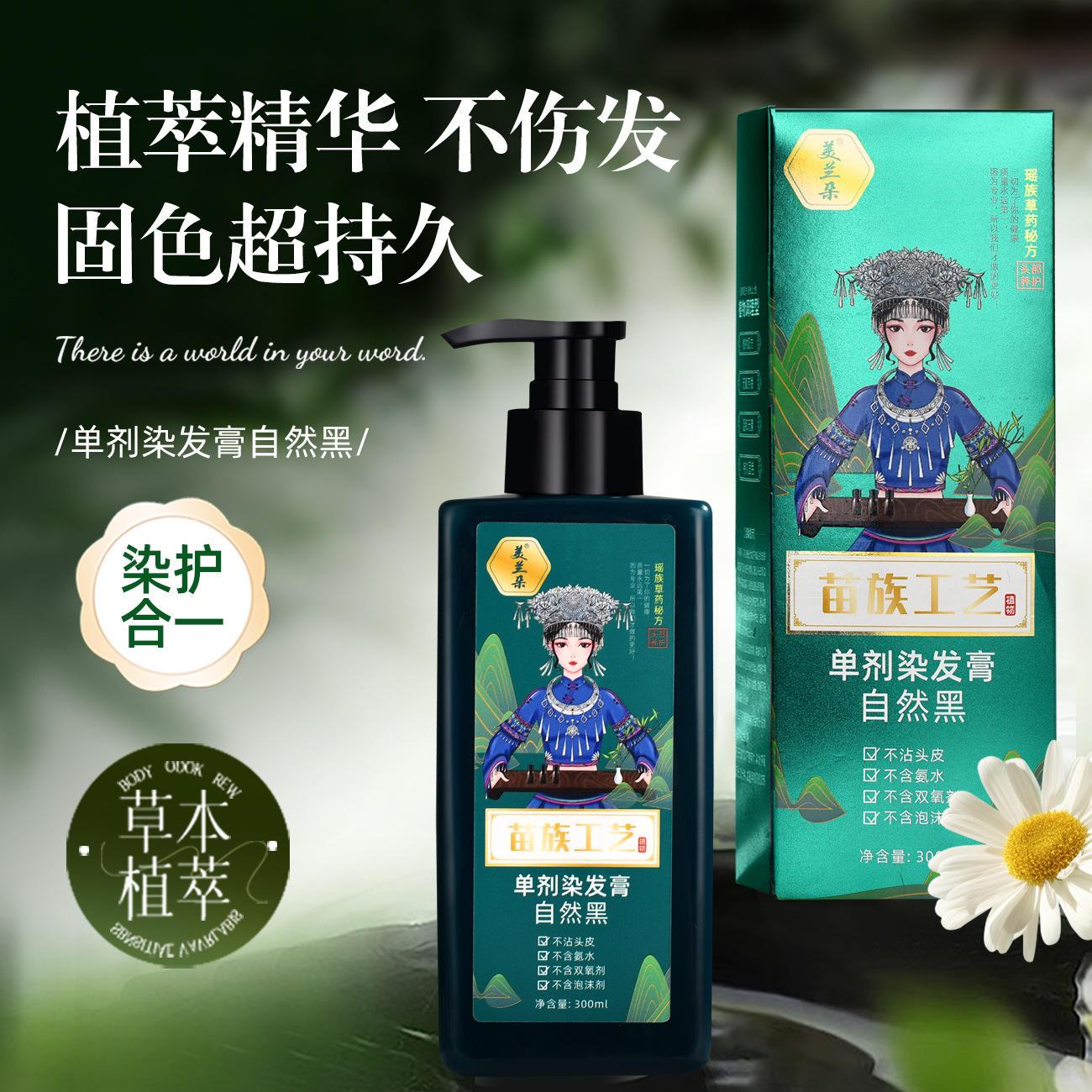 起爆苗族工芸単剤染毛剤単剤植潤黒露植物の髪保護泡染白転黒染毛