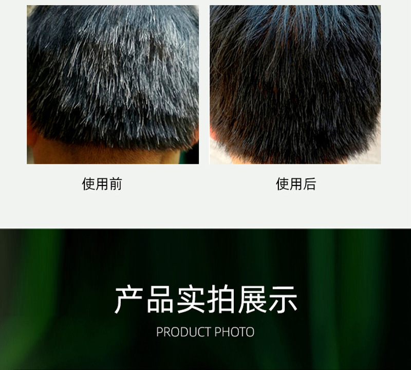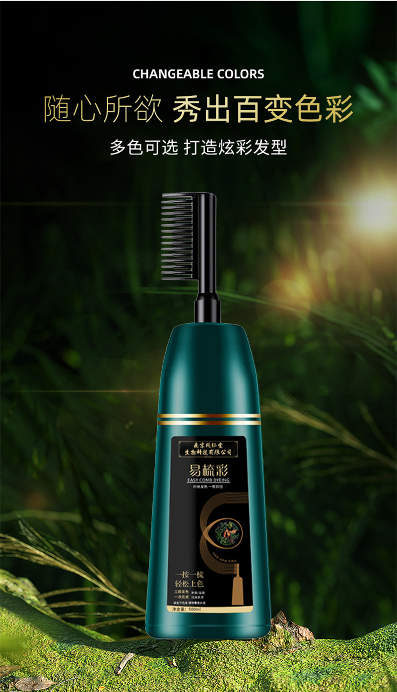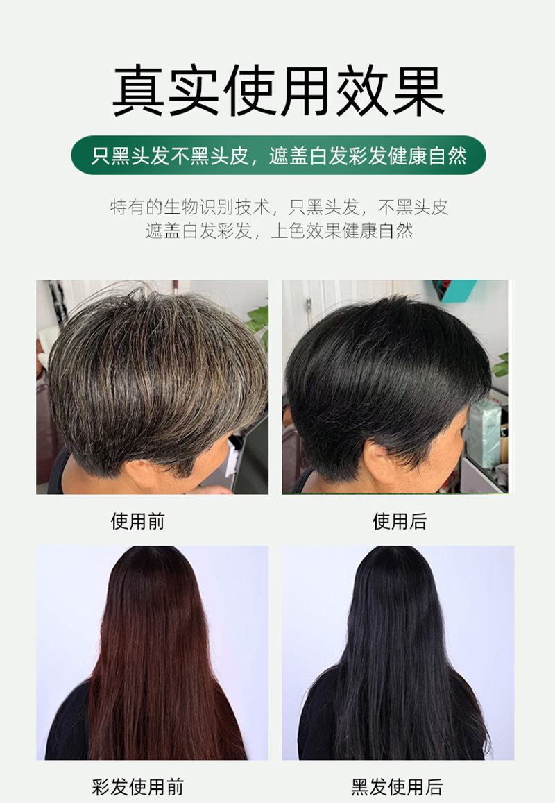 緑色の天然植物配合のワンスルー染毛剤で白髪をカバーし、一梳で黒髪に染めます。刺激がありません。