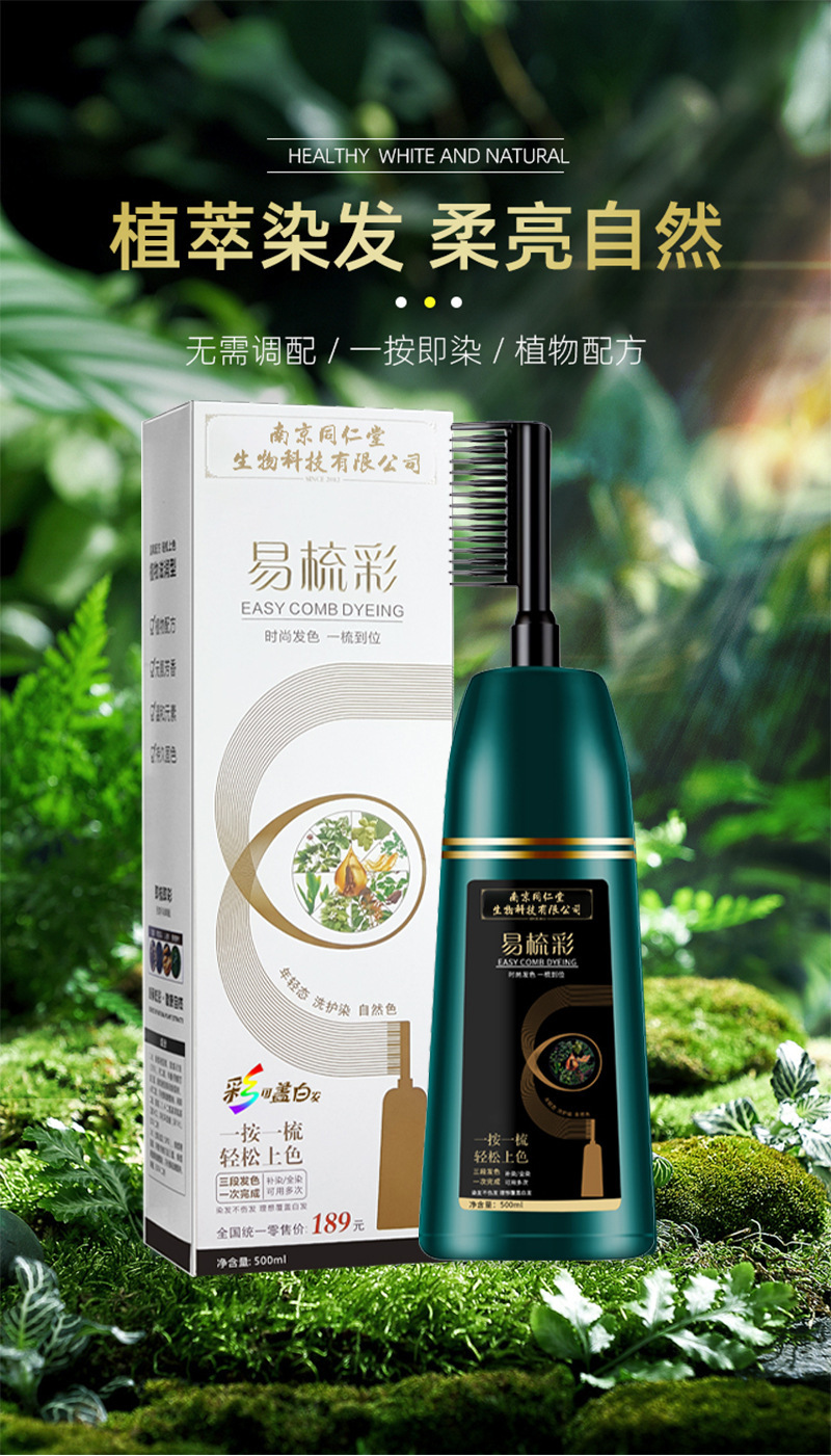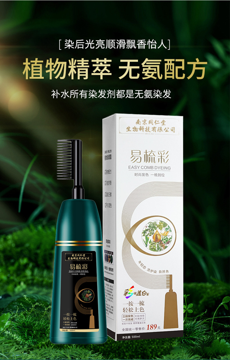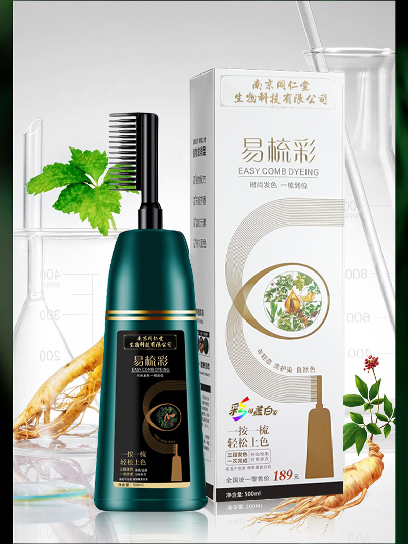 南京同仁堂一梳彩妊婦・子供用染毛剤、自宅で白髪を染める染毛クリーム、植物由来で無刺激。