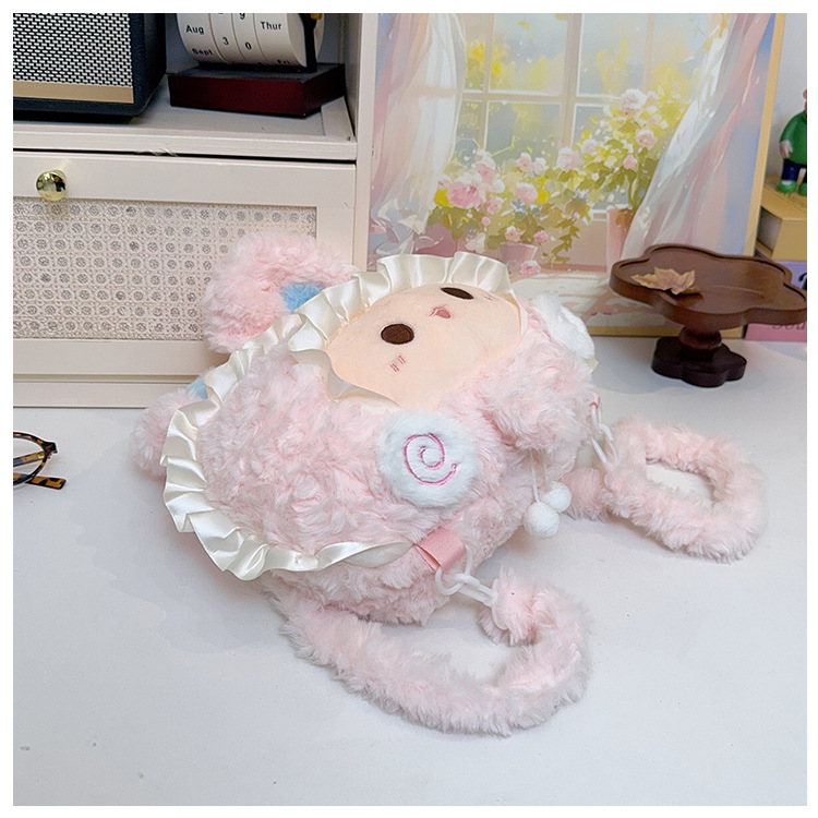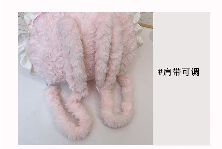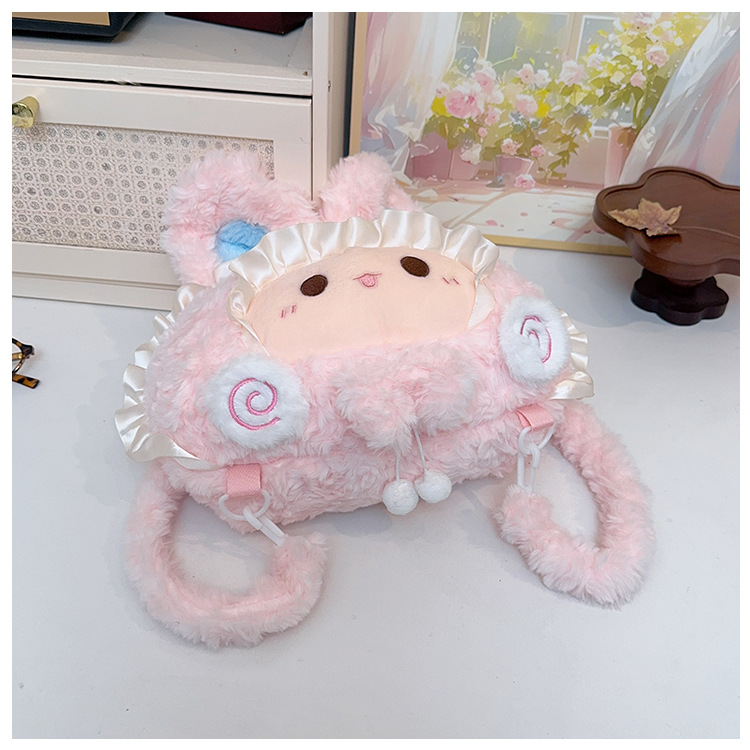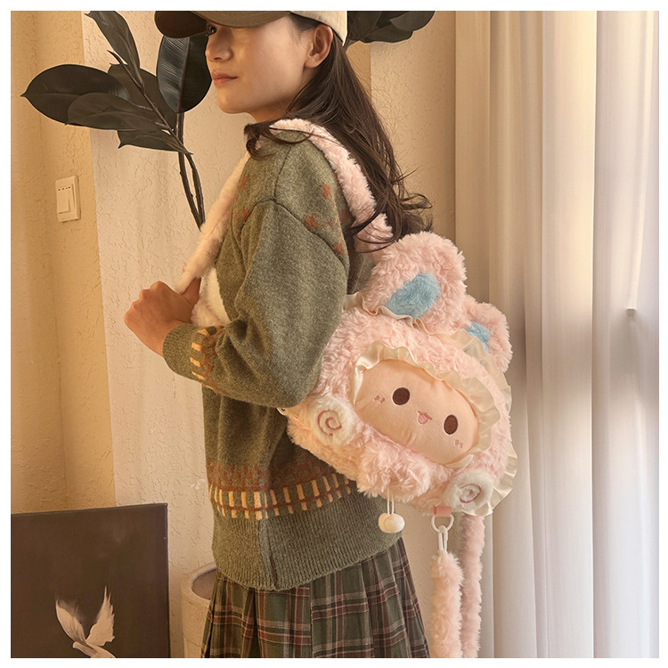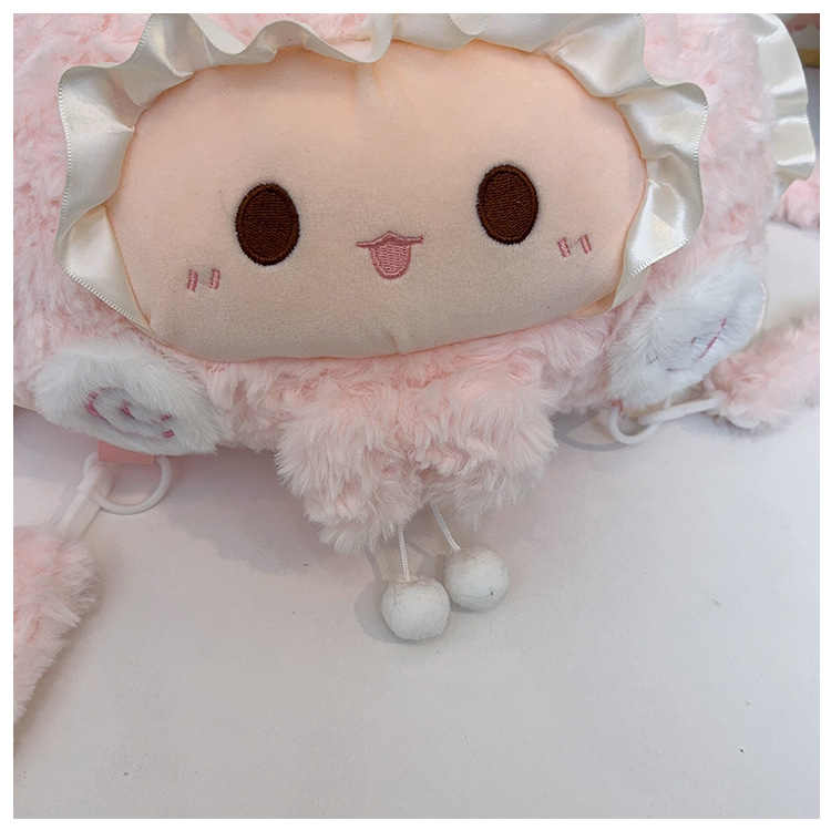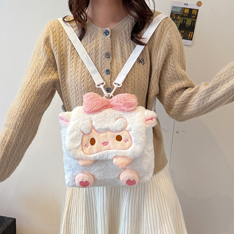 韩版可爱小羊双肩包包小众设计毛绒玩偶公仔甜美蕾丝百搭斜跨包
