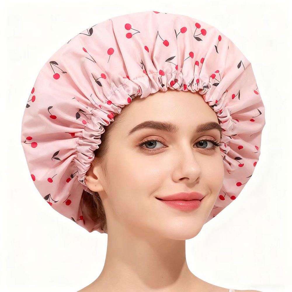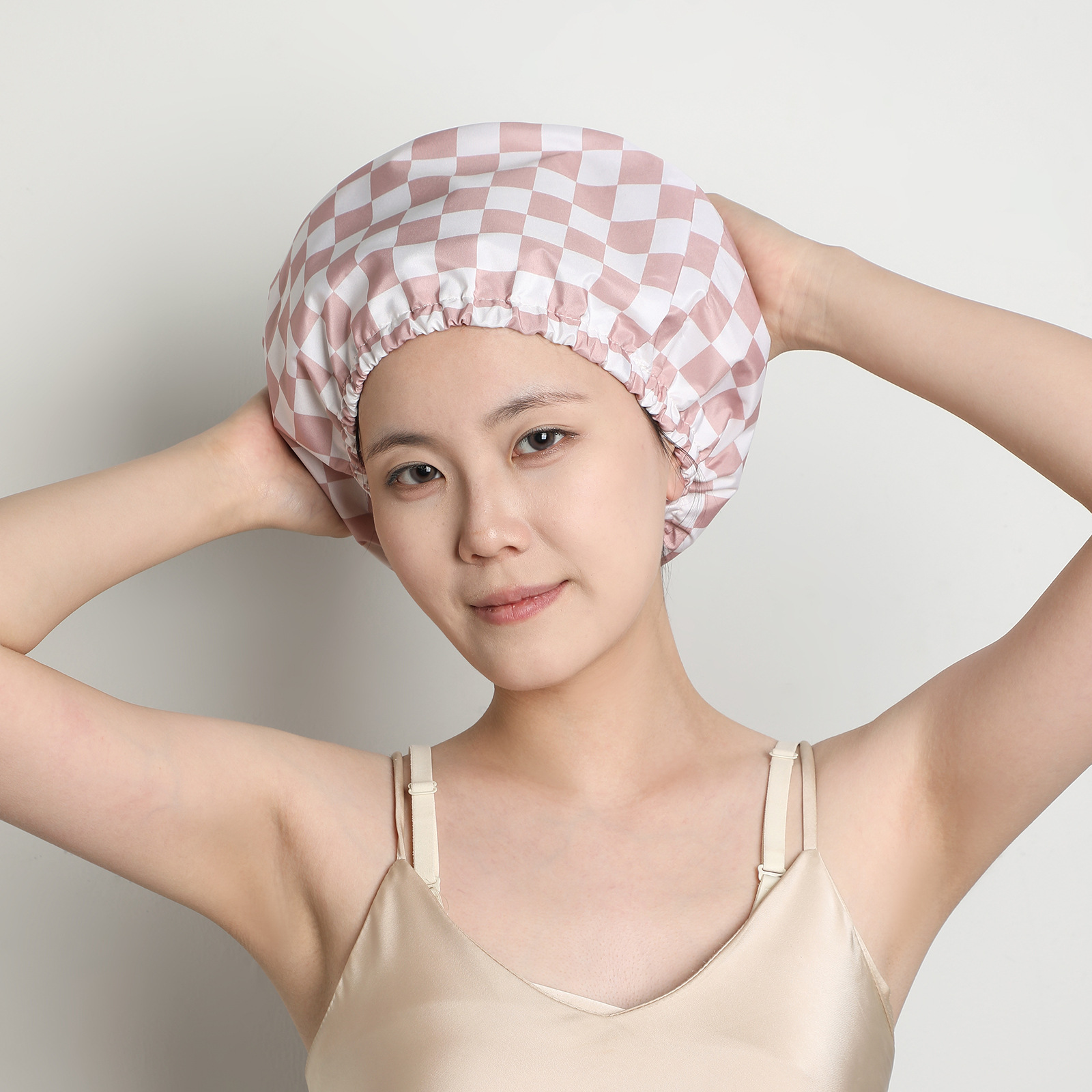亚马逊高级时尚防水护发浴帽双层成人爆款长发女护理洗澡浴帽
