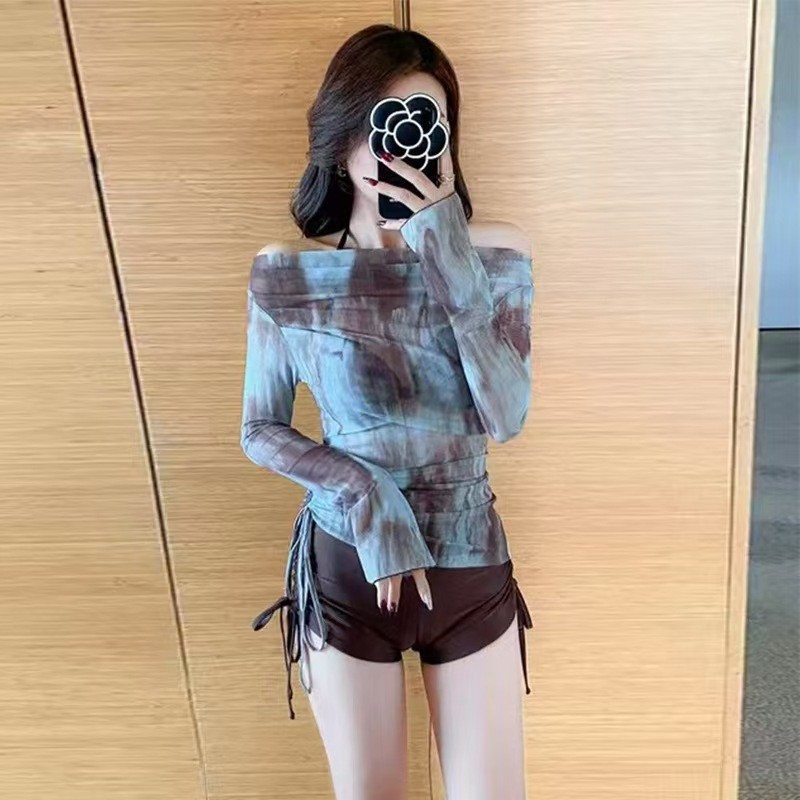 新款分体泳衣女比基尼三件套高级感海边度假温泉纯欲泳衣保守长袖