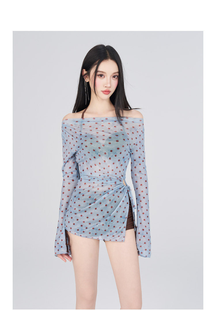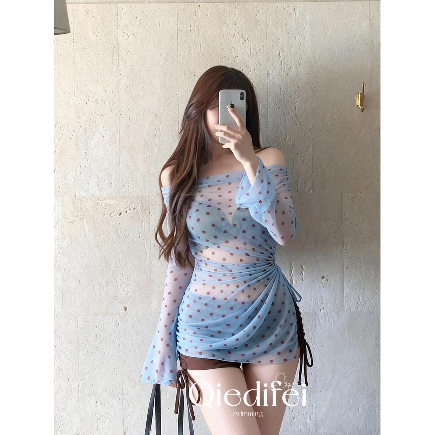 泳衣女款夏纯欲风比基尼长袖罩衫包臀裙甜美绑带度假泳装溫泉