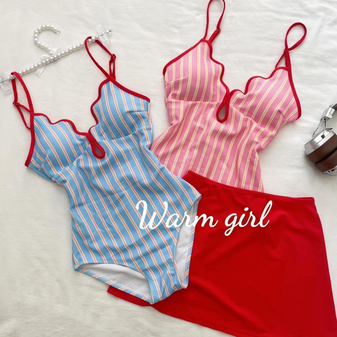 ストライプ欧米セクシービキニリゾートビーチゆったりストライプショートパンツ外着可能BM風スプリット水着ins