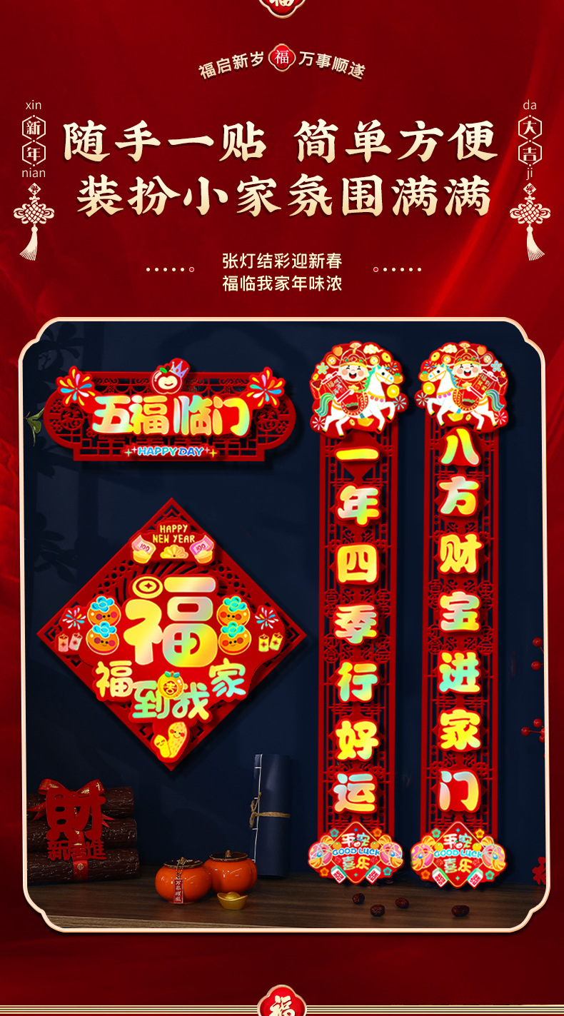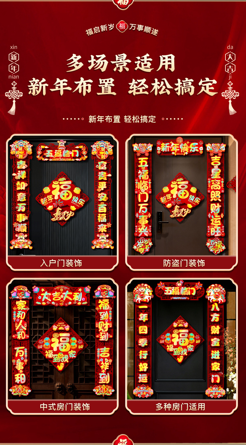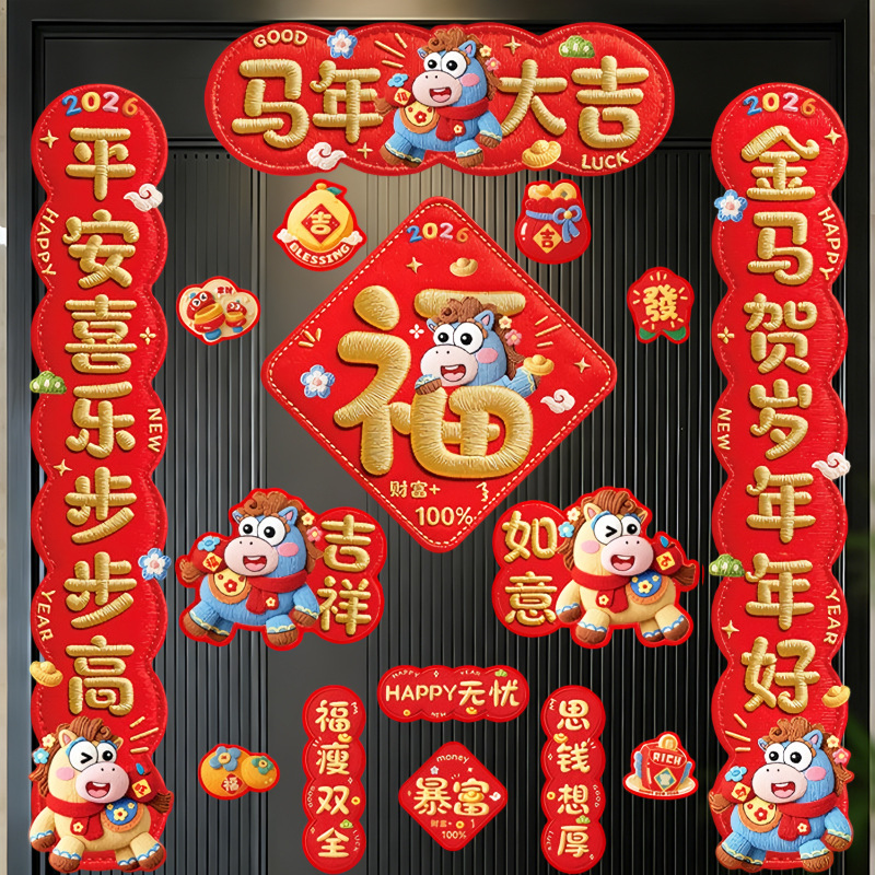 2026马年春联新款磁吸对联批货新年春节过年入户门贴福字布置用品