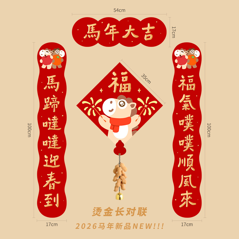 2026马年新年对联春节入户门贴福字春联高档烫金卡通可爱元旦布置