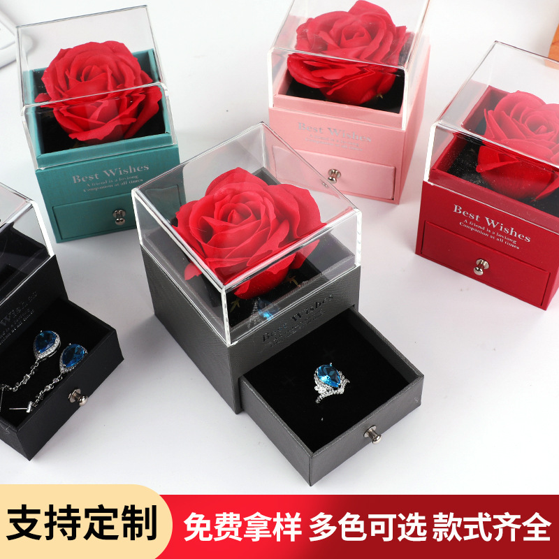 永生玫瑰花首饰盒耳钉手镯项链珠宝饰品吊坠手链戒指盒抽屉包装盒