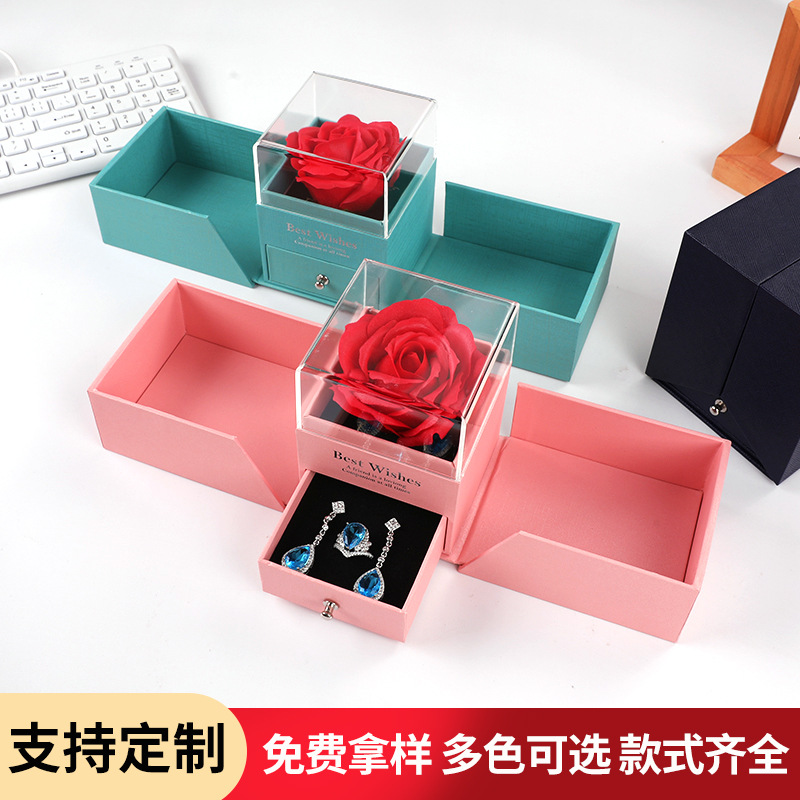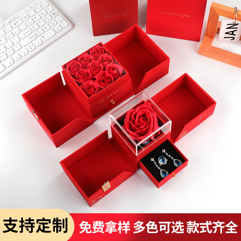 バレンタインデー二重バラのギフトボックス口紅ギフトボックス永生花ネックレス指輪ジュエリーボックス誕生日包装ボックス