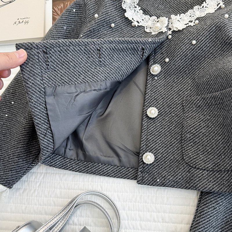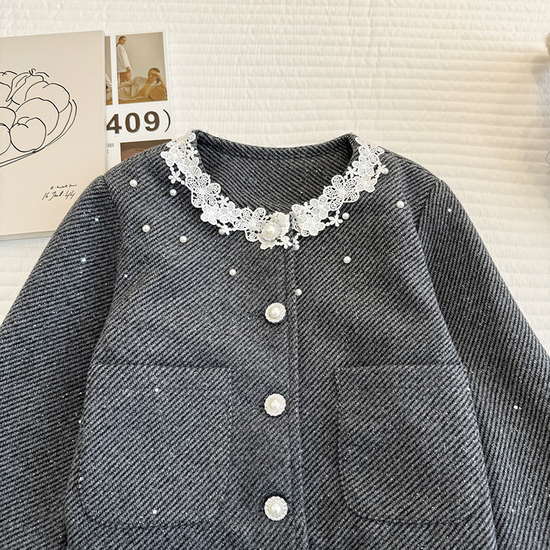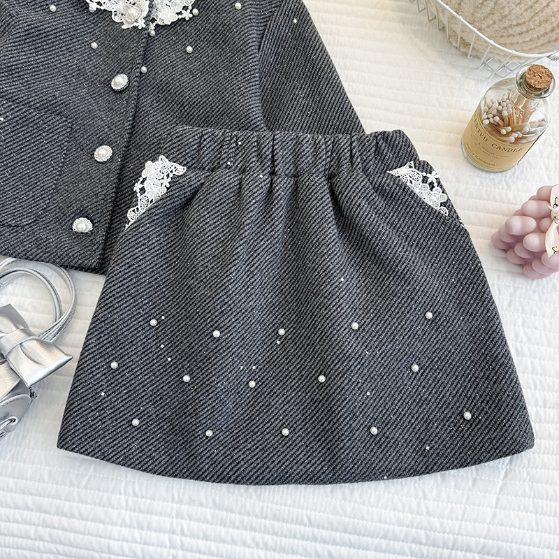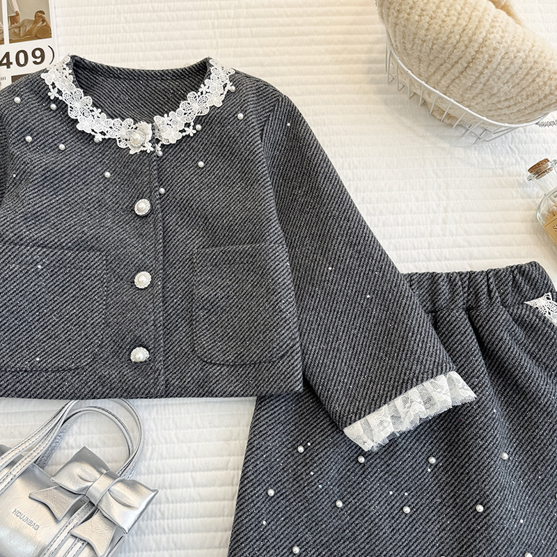 女童小香风套装裙子2026年春季小女孩高级感花边外套半身裙两件套