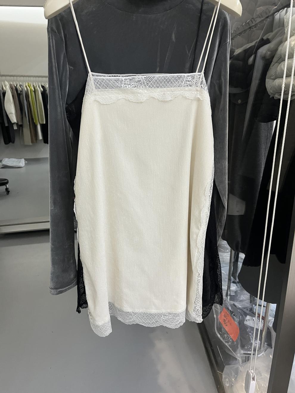 MMFISH时髦街头缎面蕾丝拼接吊带裙设计感不规则气质内搭25Q613