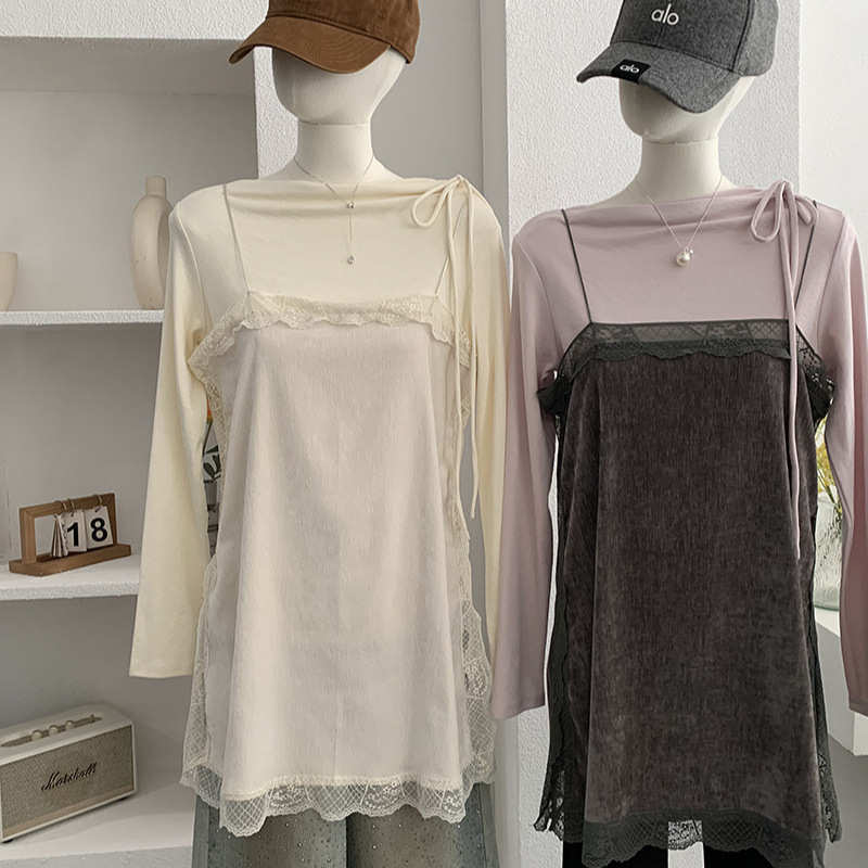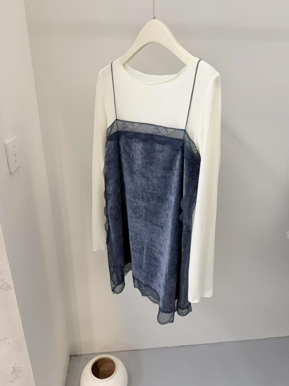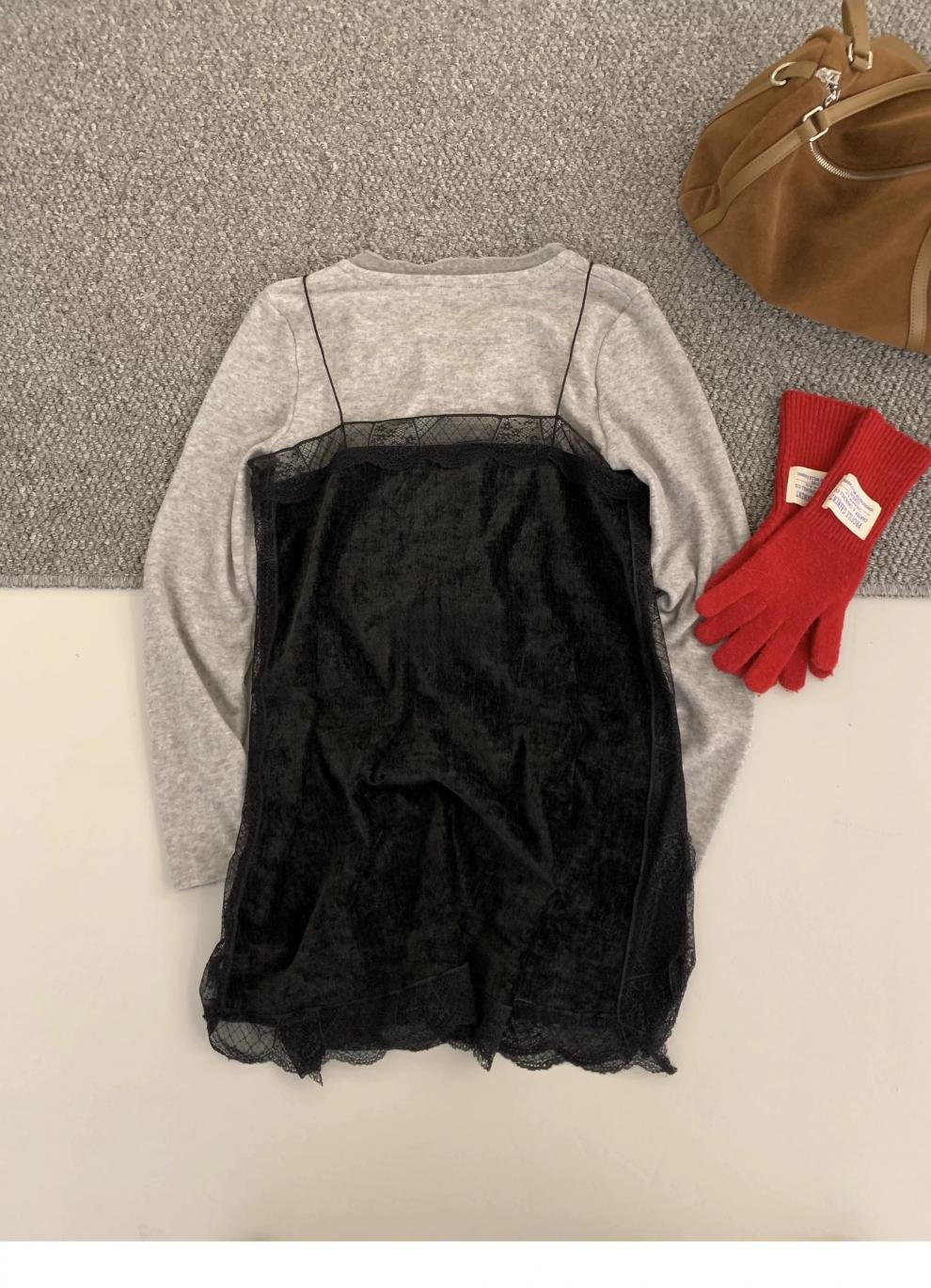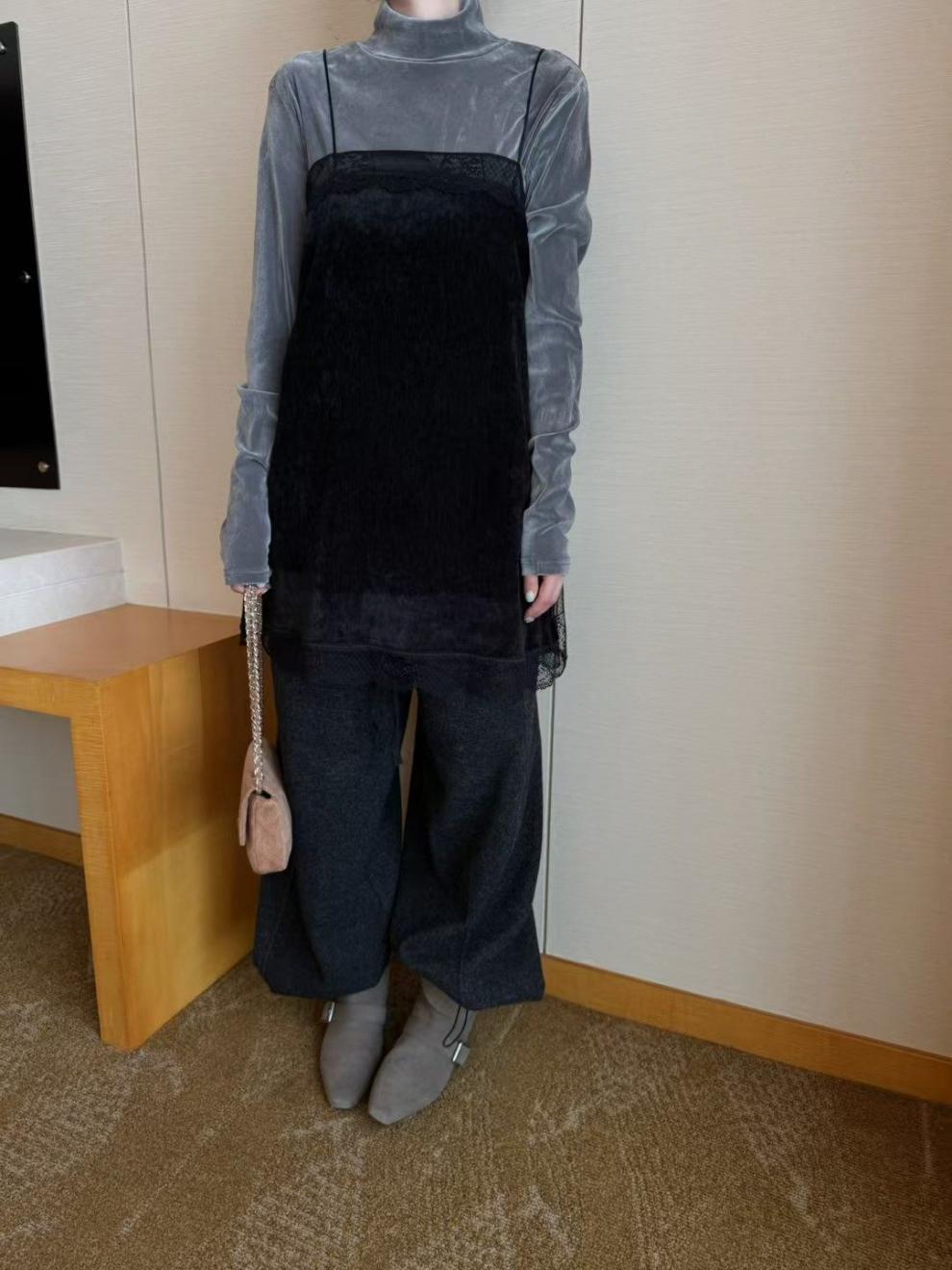 韩国女装高货2026早春韩系蕾丝拼接丝绒吊带裙女气质显瘦叠穿无袖