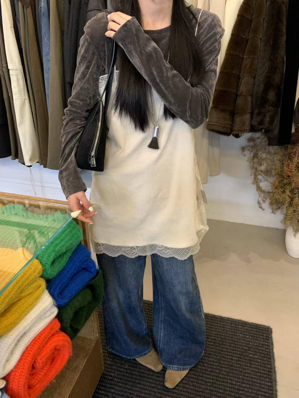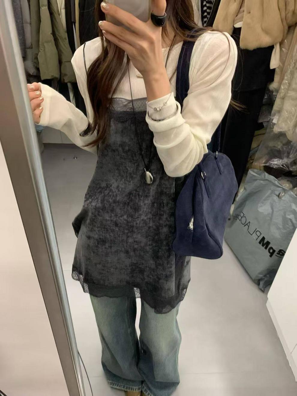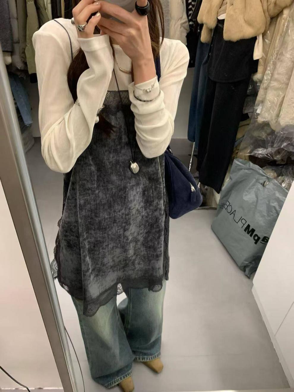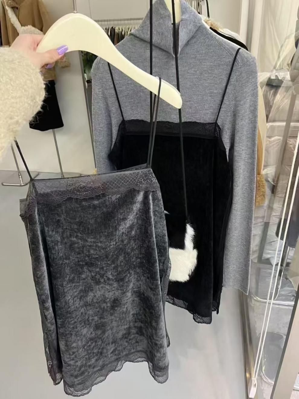 韩国女装高货2026早春韩系蕾丝拼接丝绒吊带裙女气质显瘦叠穿无袖