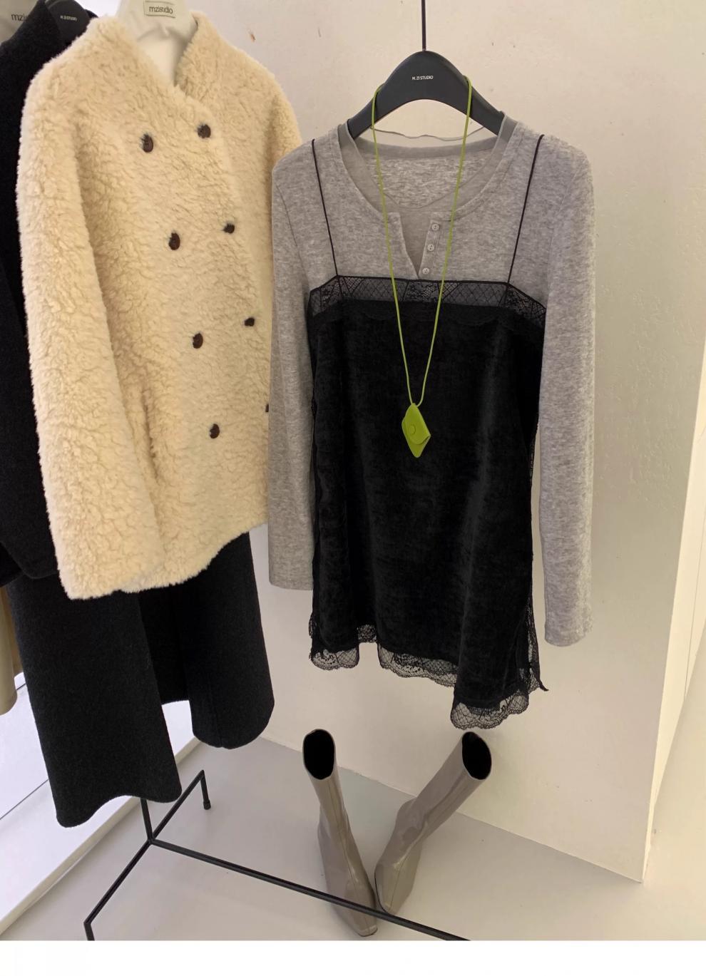 韓国の婦人服東大門は冬には、小さなラベルを着て、色の子羊の毛にぶつかります。