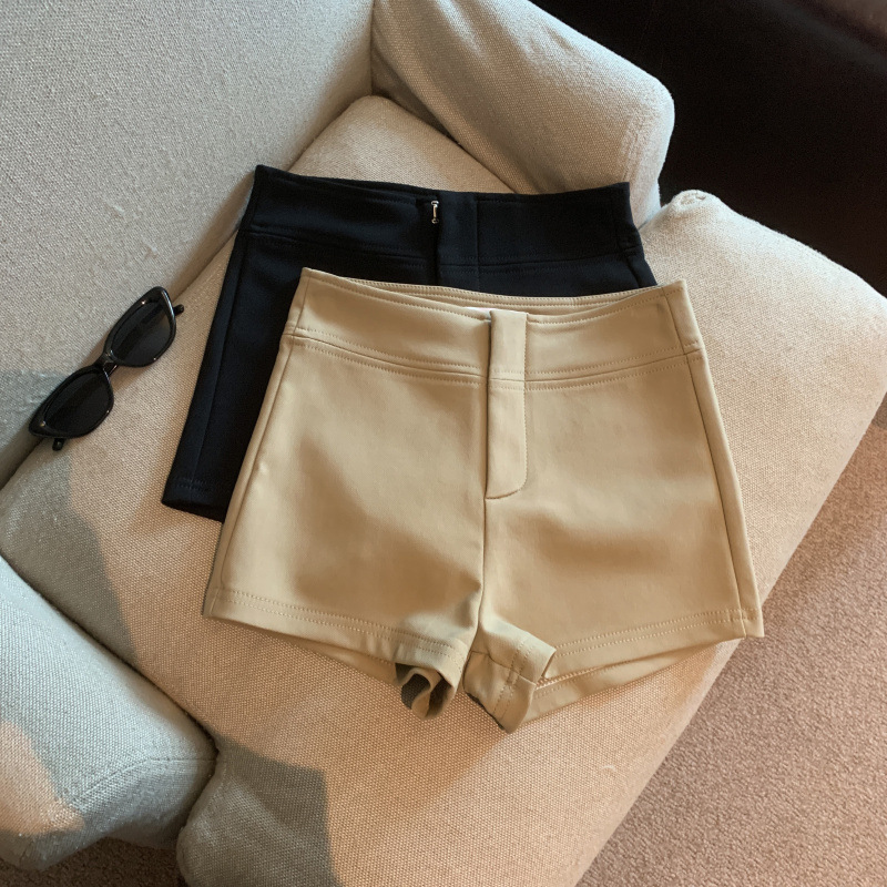 女性用のリアルショットハイウエストショーツ、レトロな気質、スリムフィット、ストレートレッグ、カジュアルで多用途なパンツ