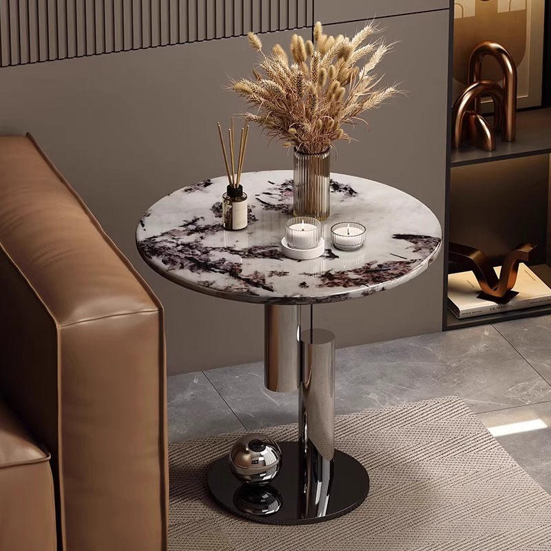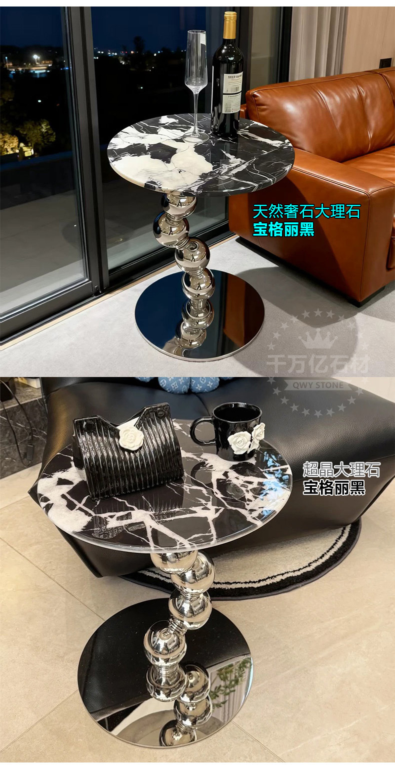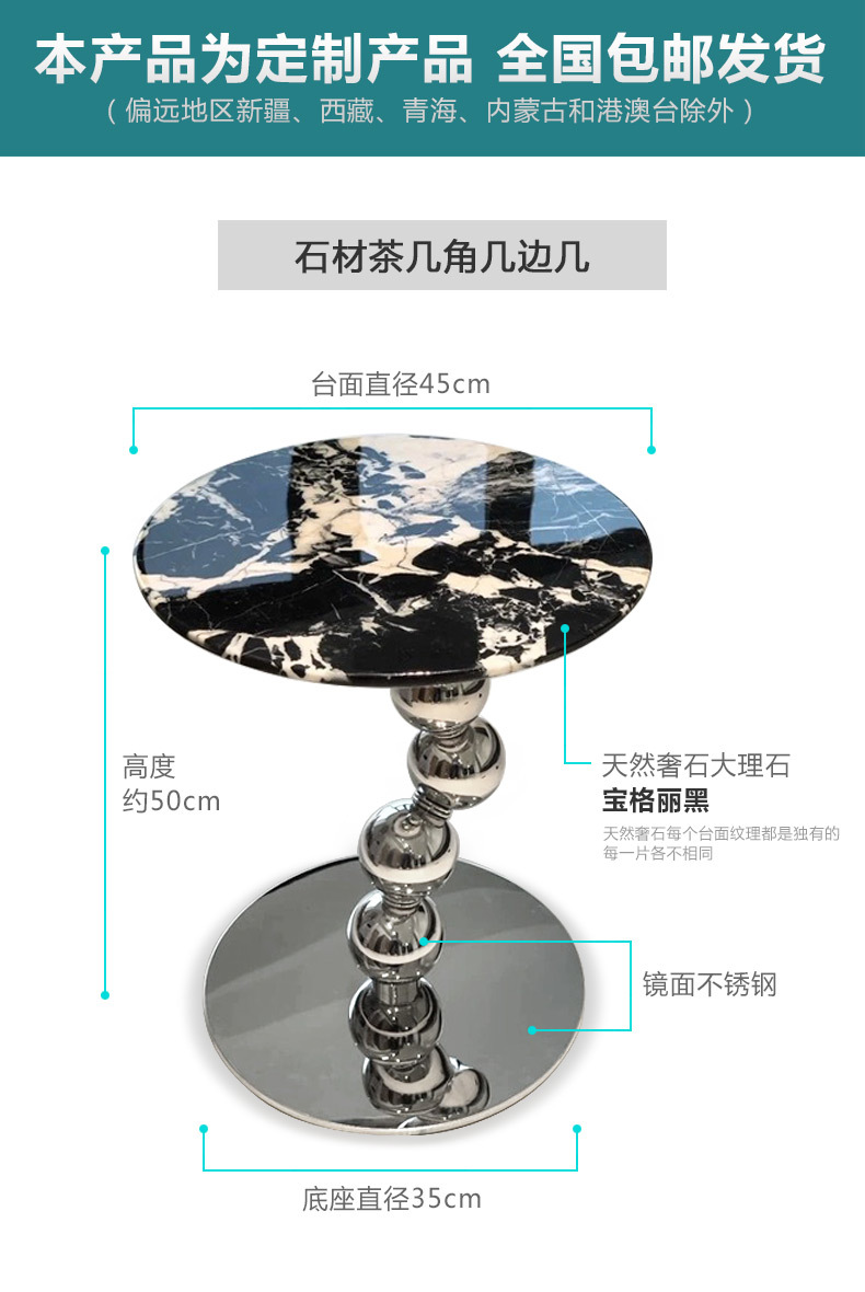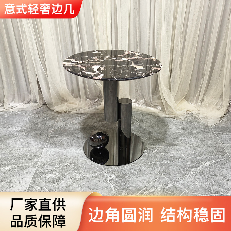 意式轻奢圆形奢石沙发边几极简设计师款现代简约大理石角几茶几