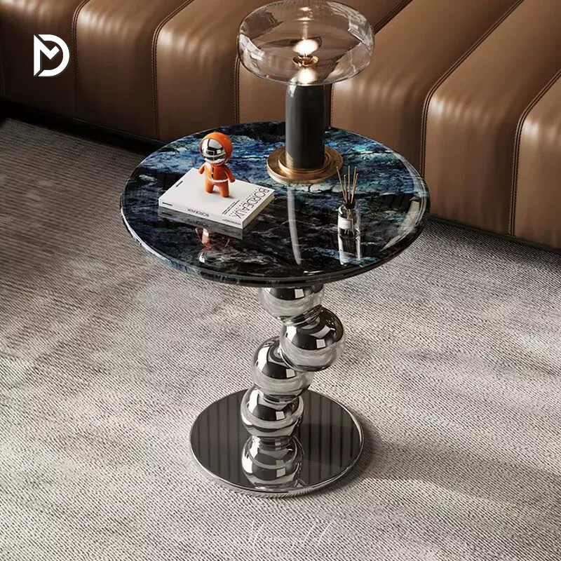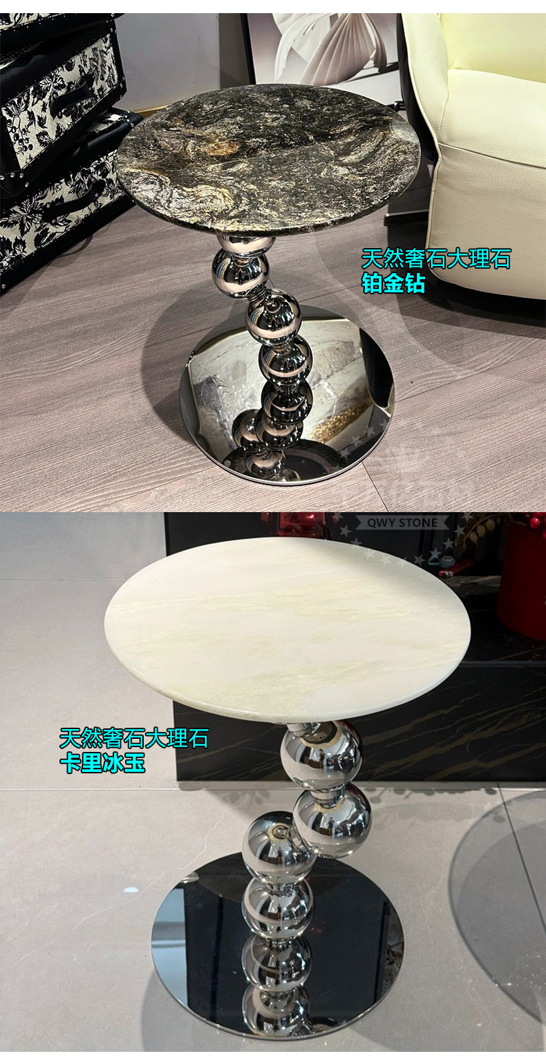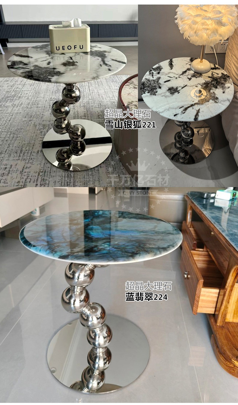 意式轻奢圆形奢石沙发边几极简设计师款现代简约大理石角几茶几