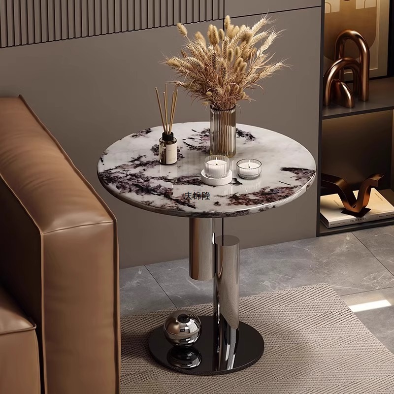 极简大理石高级感圆形小茶几家用沙发边几设计师款轻奢客厅角几