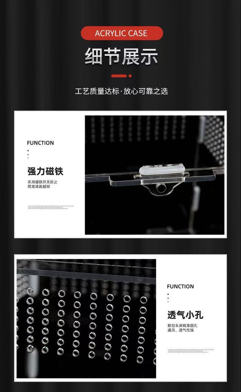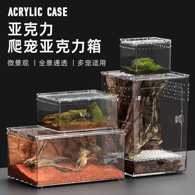 亚克力爬宠饲养盒高透可视蜥蜴乌龟生态缸蛇宠仓鼠爬行动物观赏盒