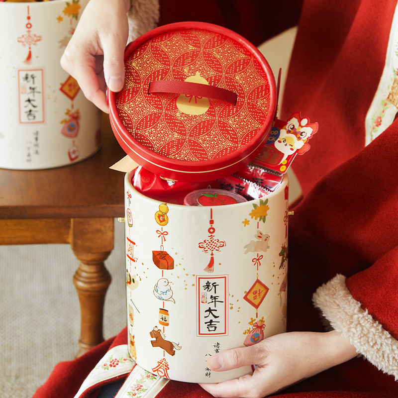 新年礼盒包装盒烘焙雪花酥曲奇饼干盒太妃糖牛轧糖果盒手拎抱抱桶