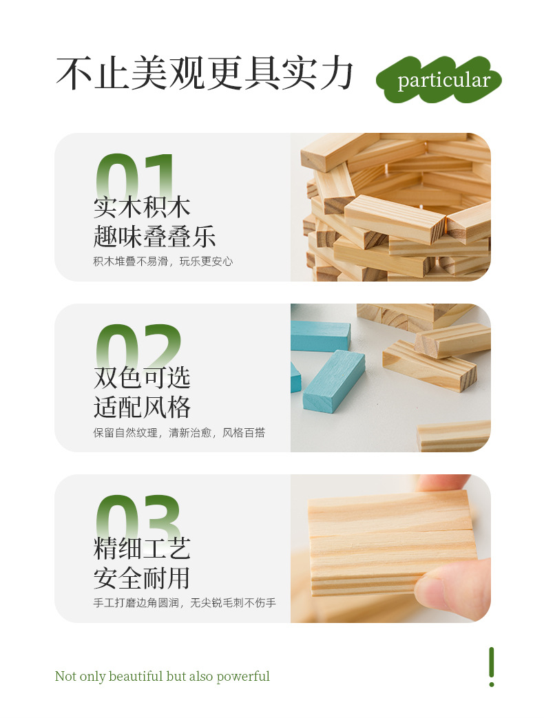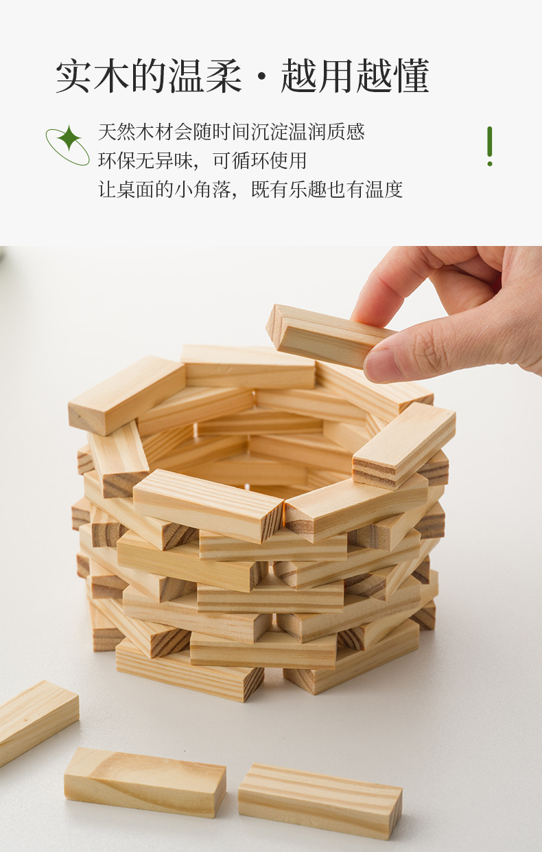 木制玩具积木儿童成人家用方块亲子互动益智木质叠叠高多米骨牌