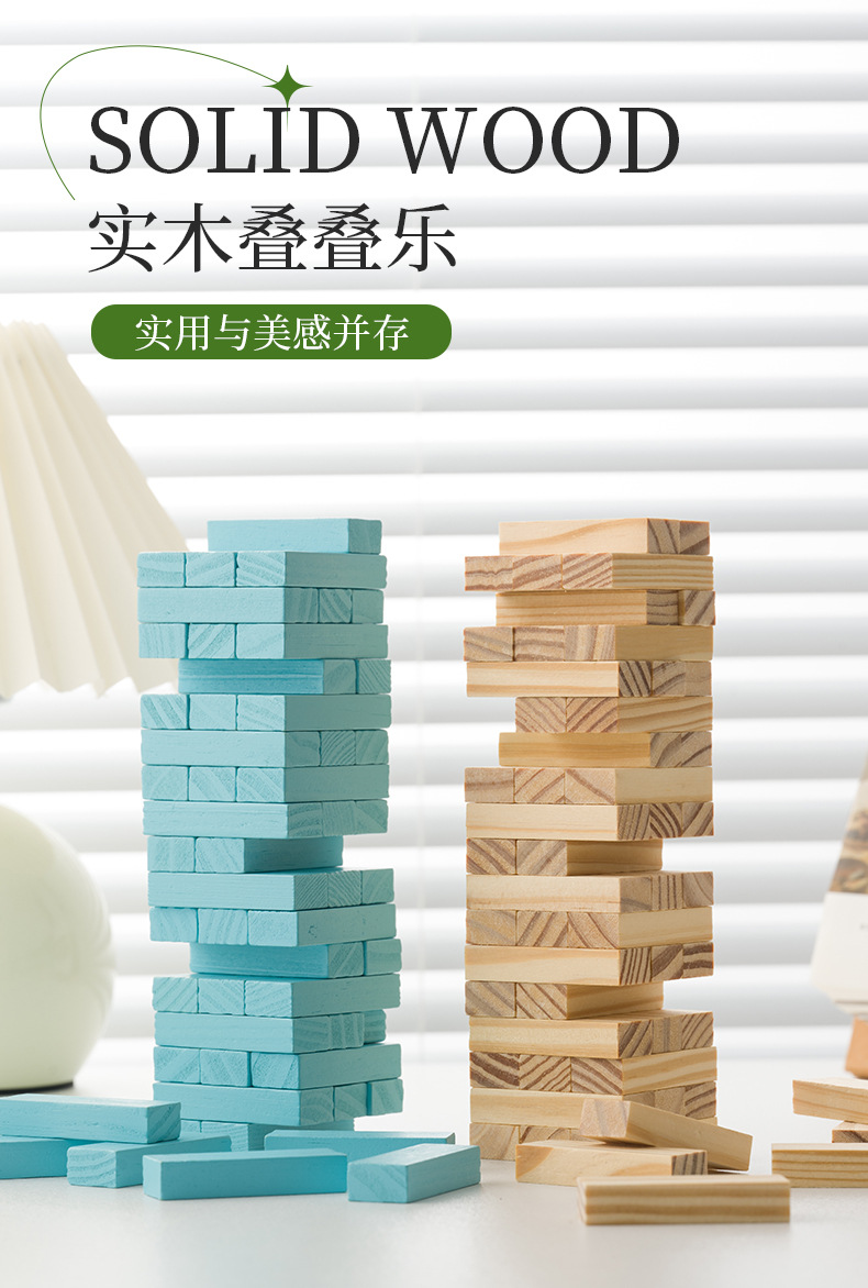 木质儿童叠叠乐桌面互动亲子类益智早教大颗粒玩具叠叠高积木拼装