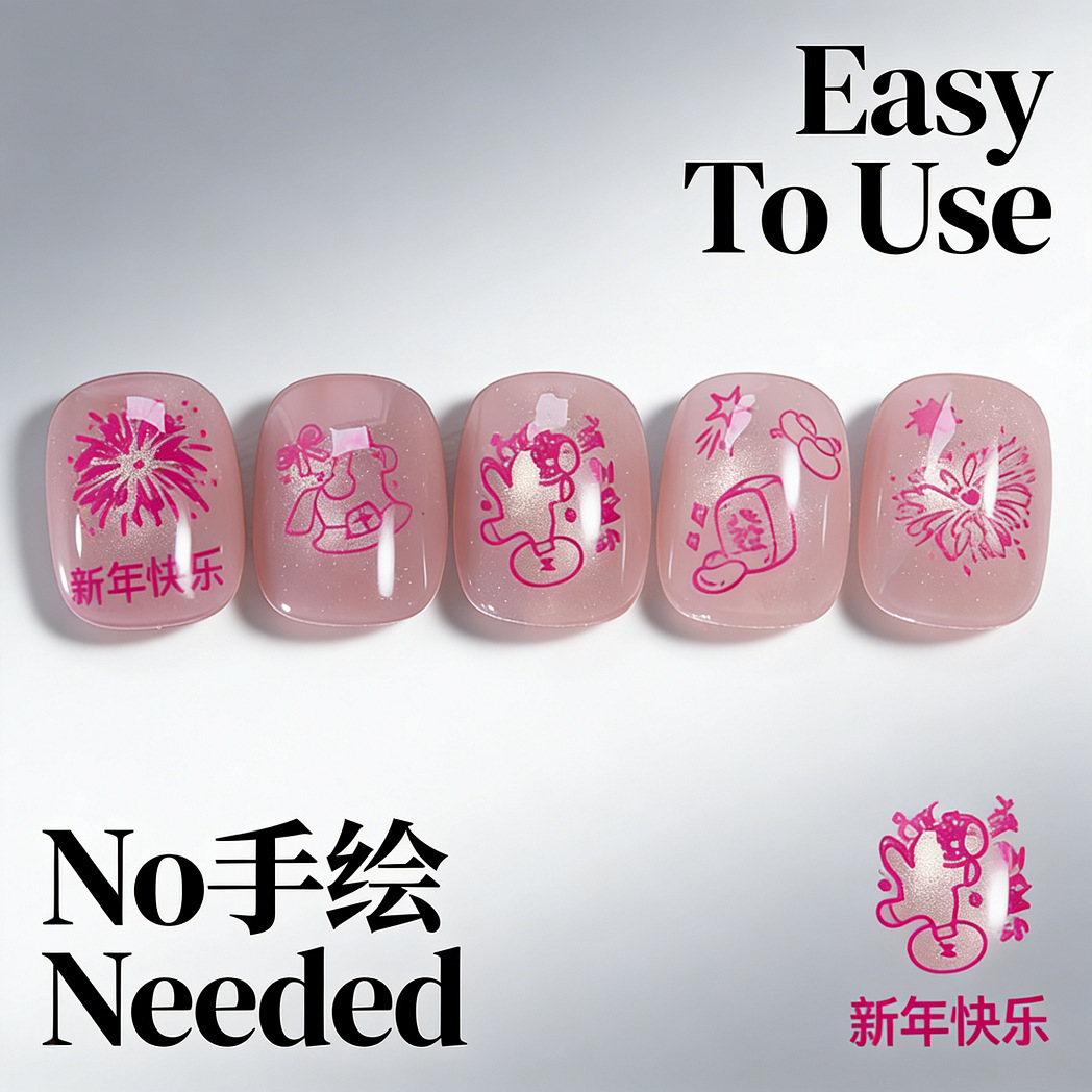 2026马年美甲印花钢板新年小马烟花印章印花油图案模板指甲转印板