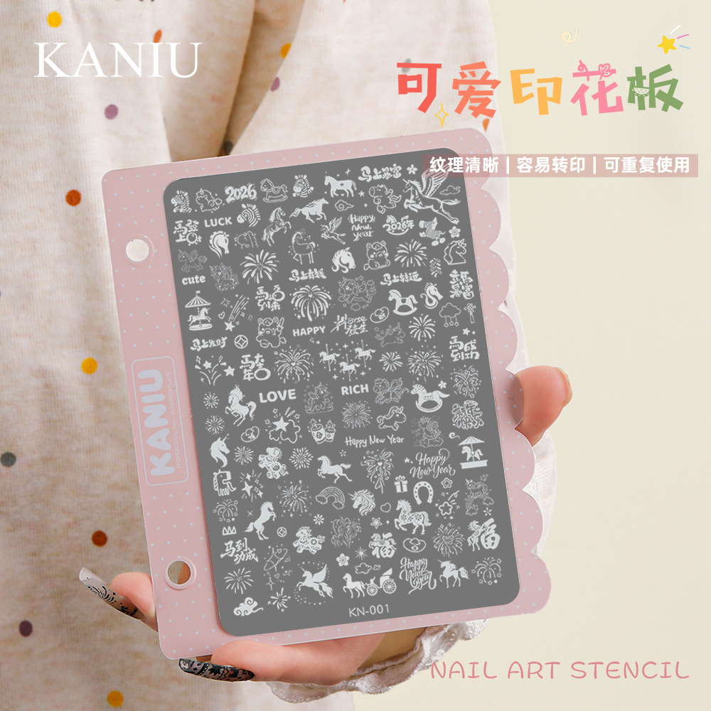 2026马年美甲印花钢板新年小马可爱独角兽图案指甲转印模板工具