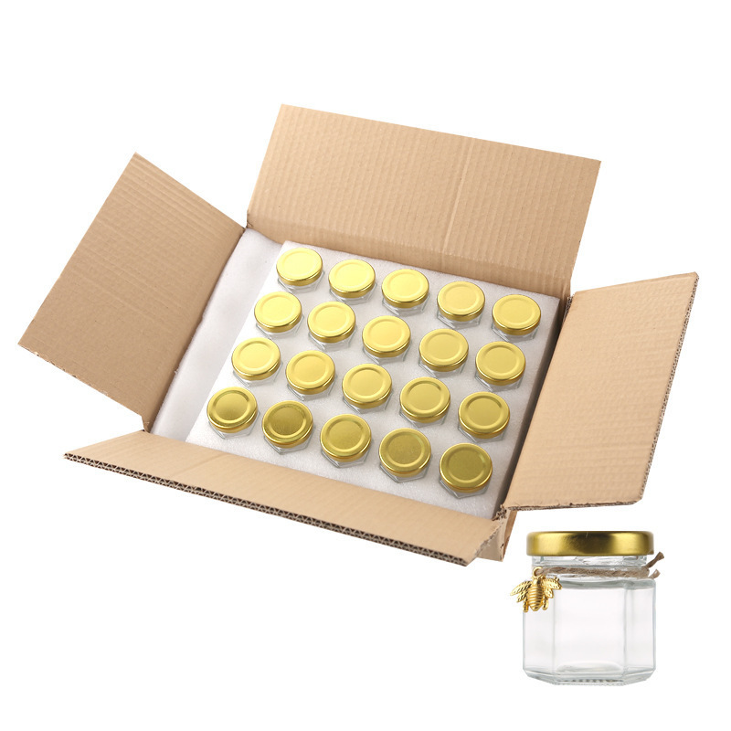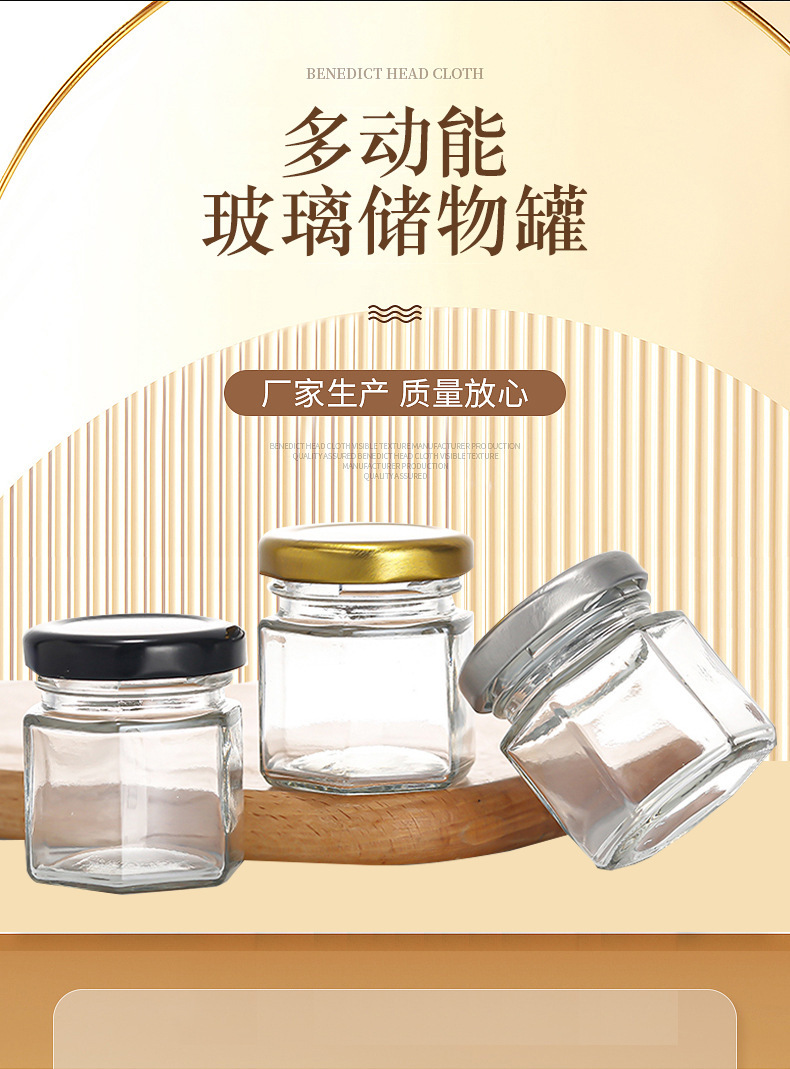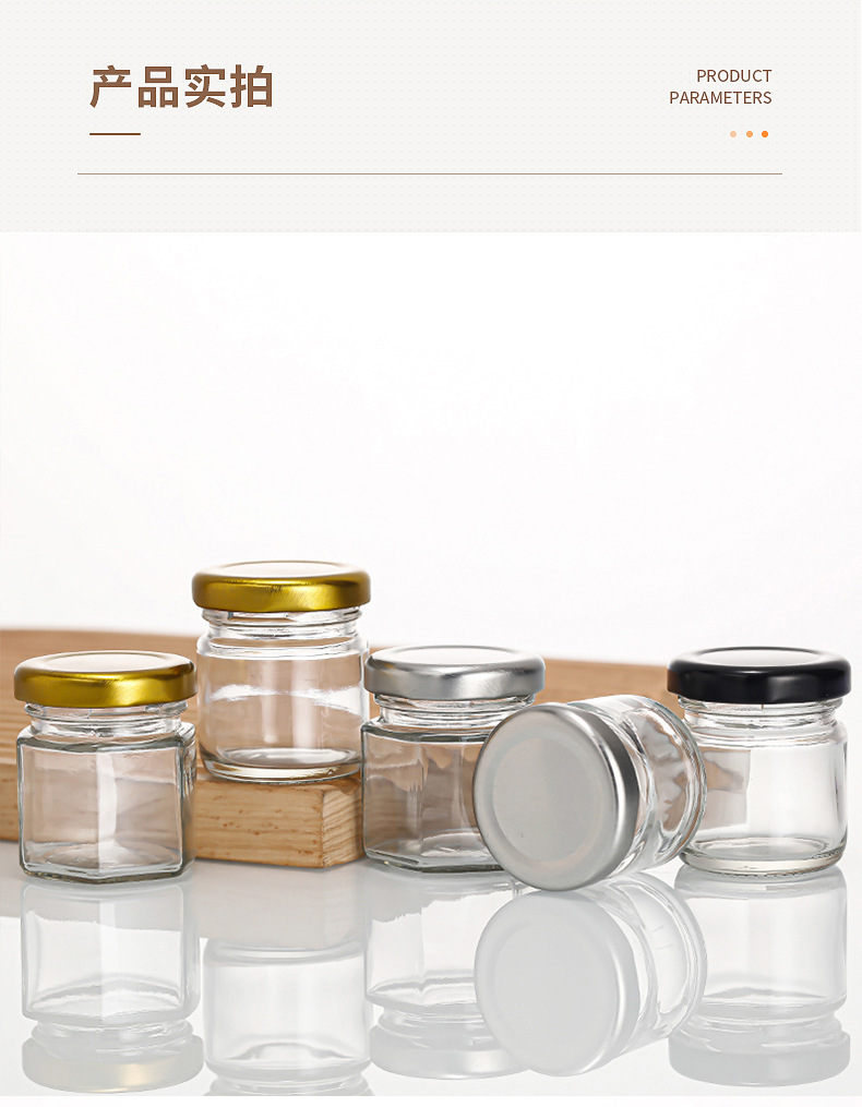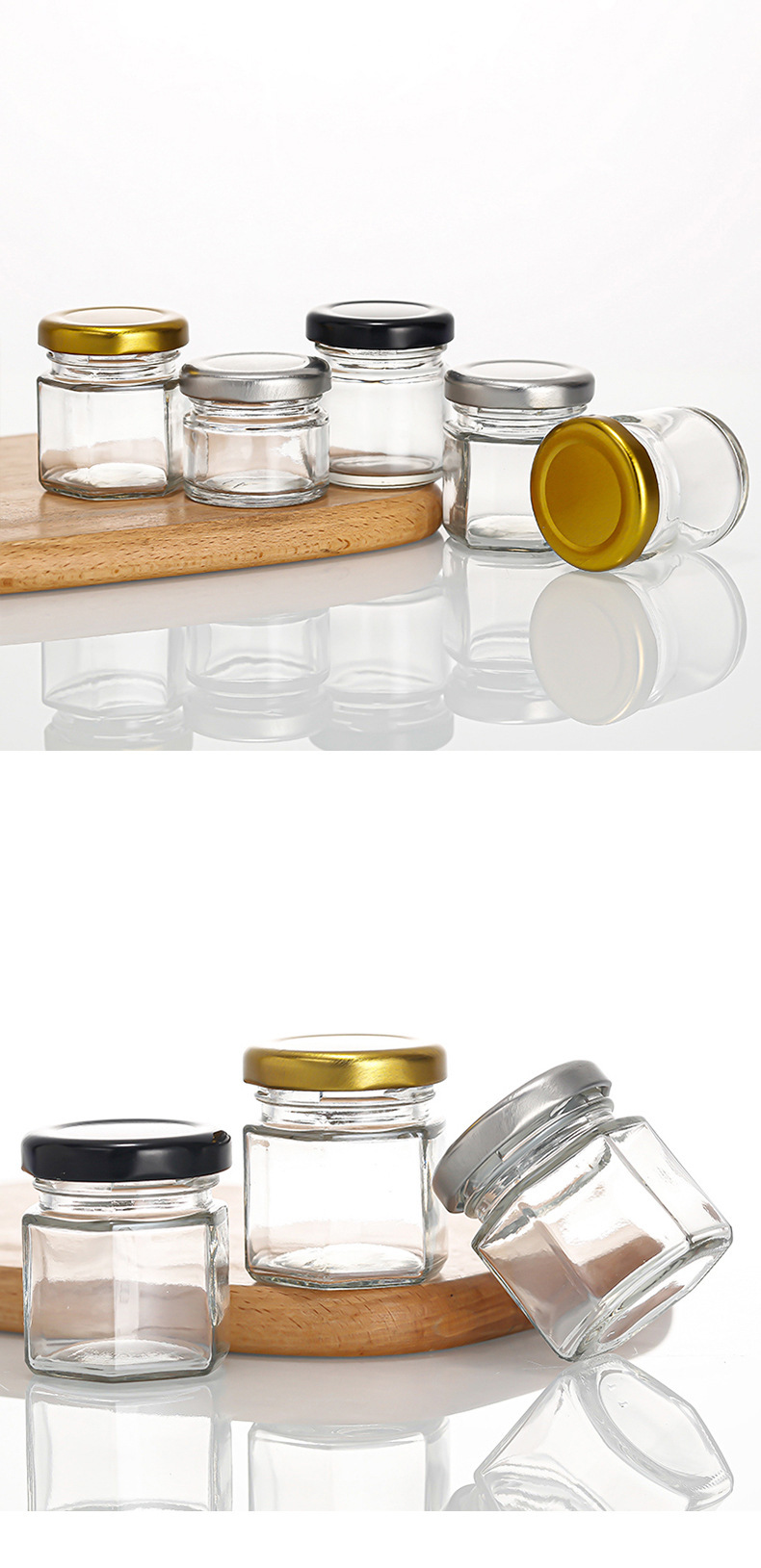 跨境玻璃密封喜蜜瓶45ml六棱蜂蜜瓶套装燕窝果酱分装瓶透明玻璃瓶