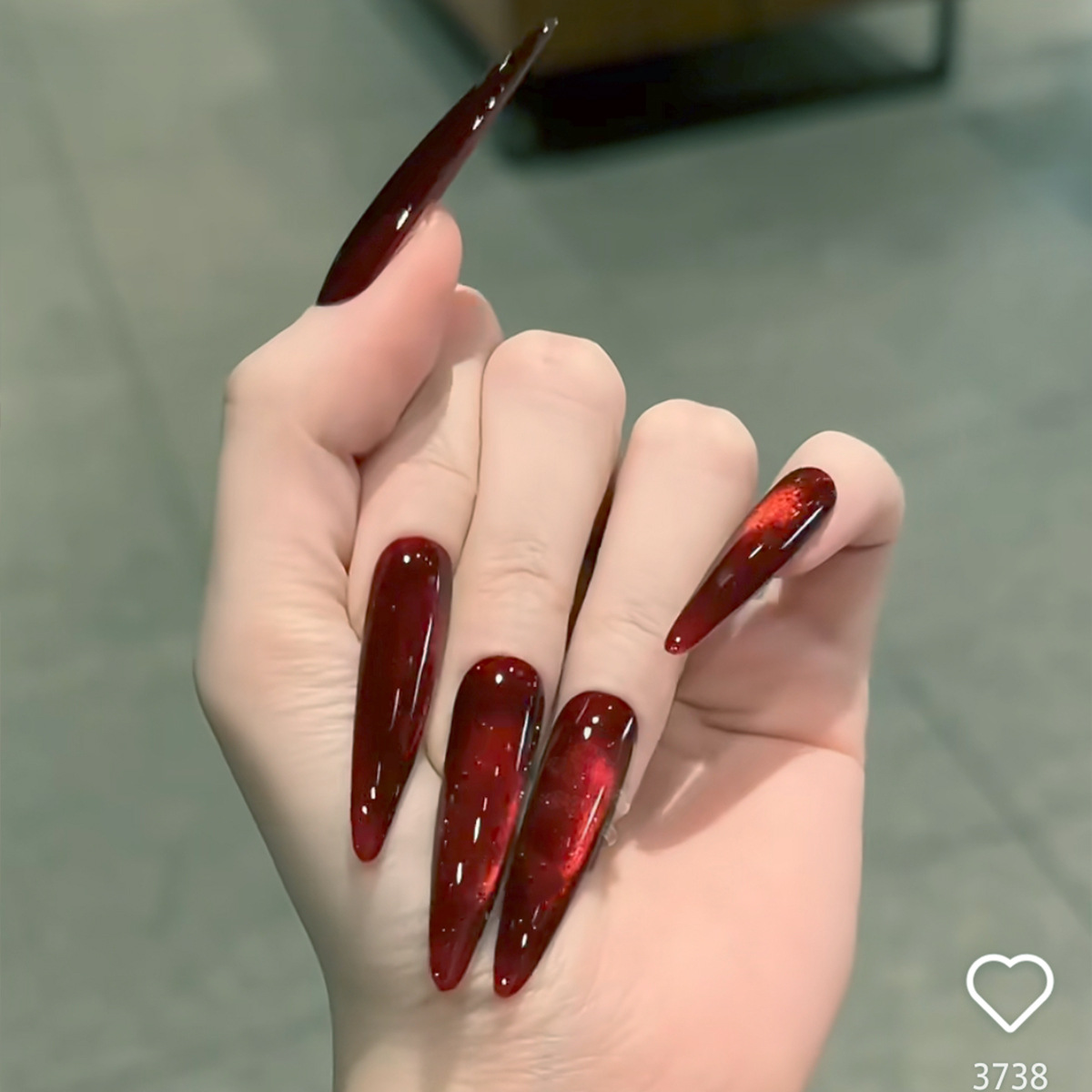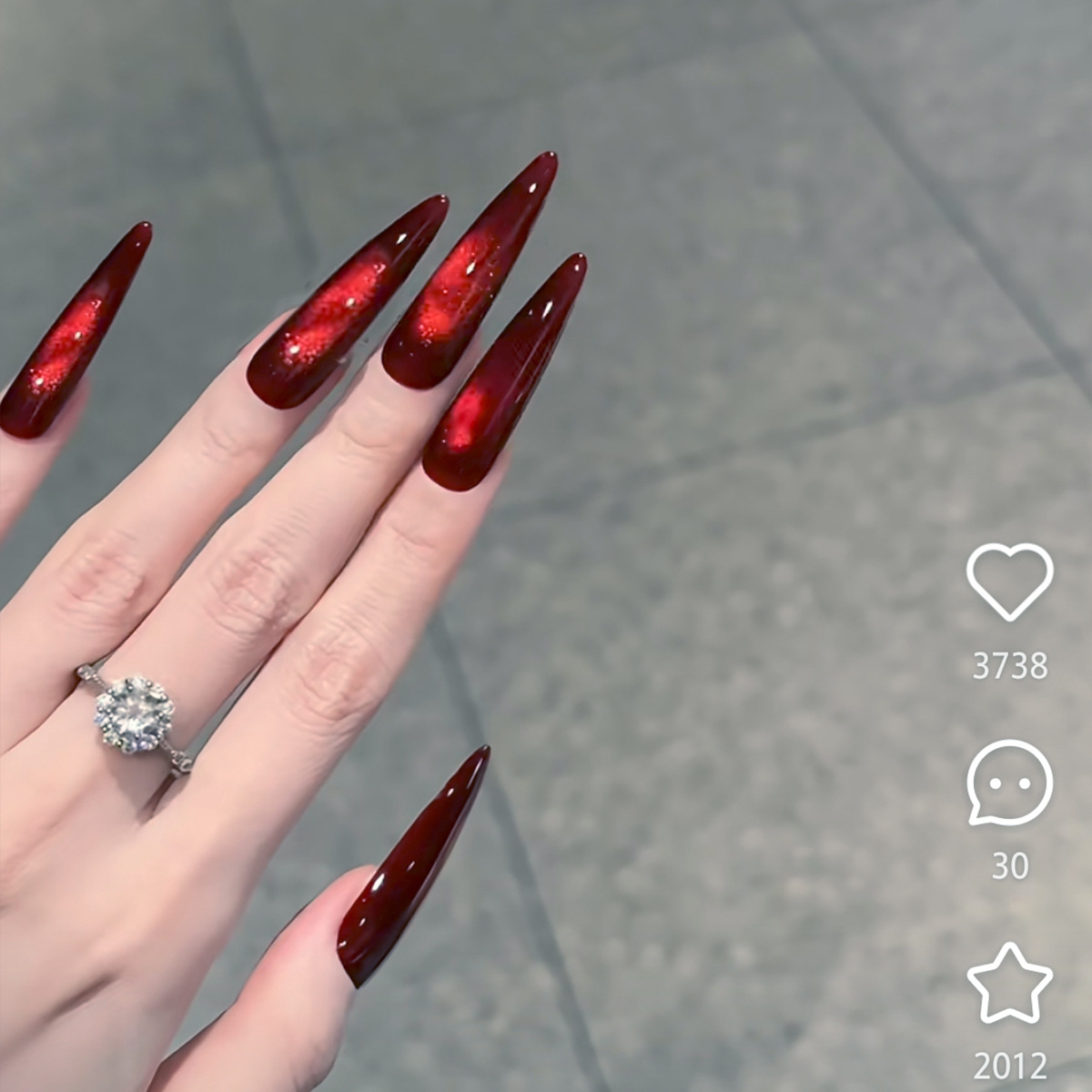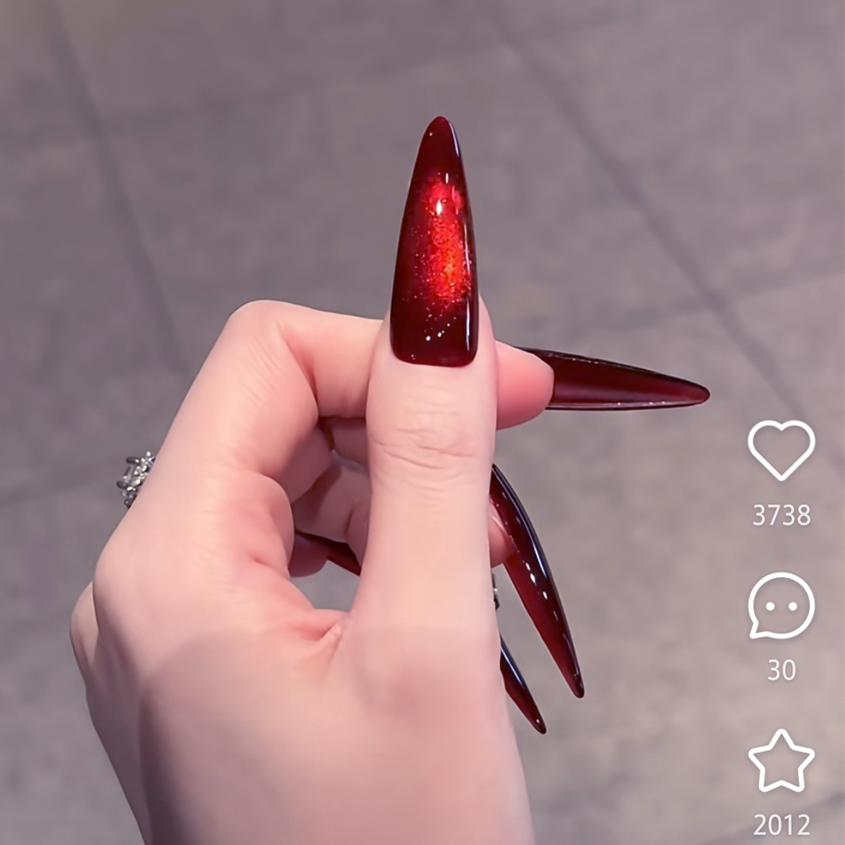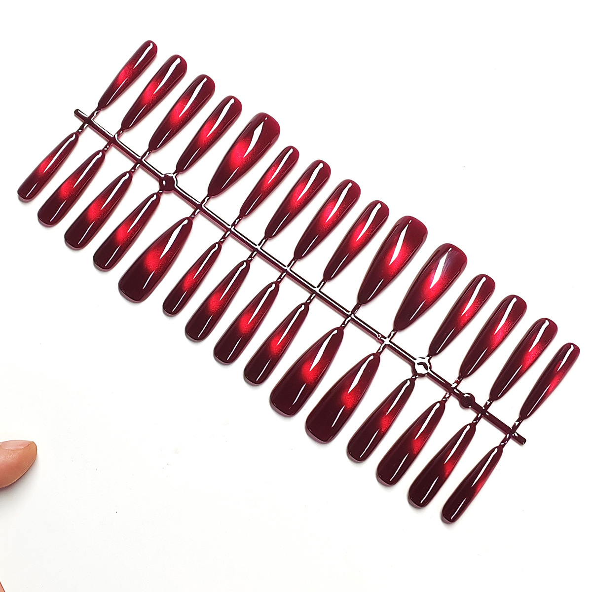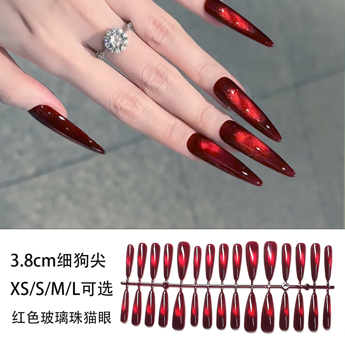 红宝石玻璃珠猫眼甲片显白预制甲片30片成品穿戴甲裸条新年甲