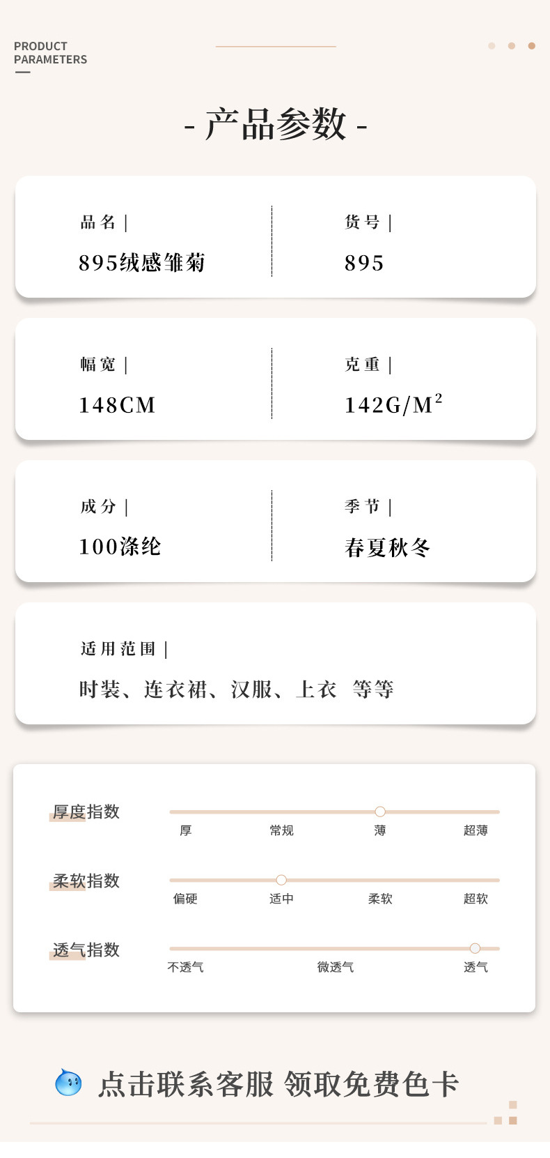 立体绒感雏菊雪纺剪花面料 142g梭织提花雪纺布料 时装连衣裙面料