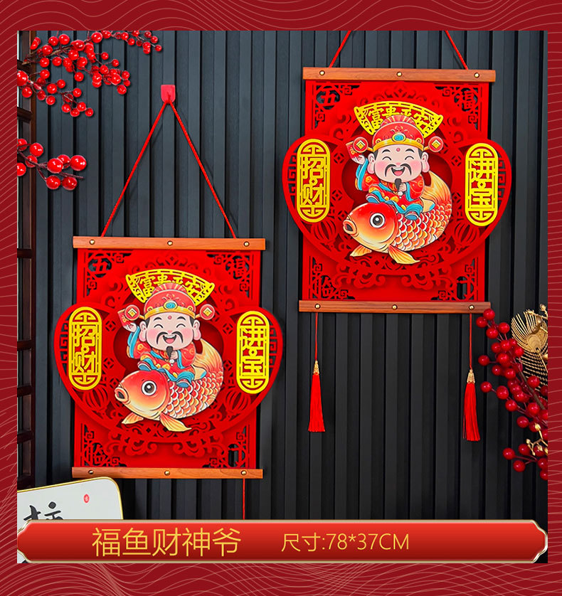 2026新款点头财神赚大钱过年装饰品客厅挂饰春节新年财神挂件装饰
