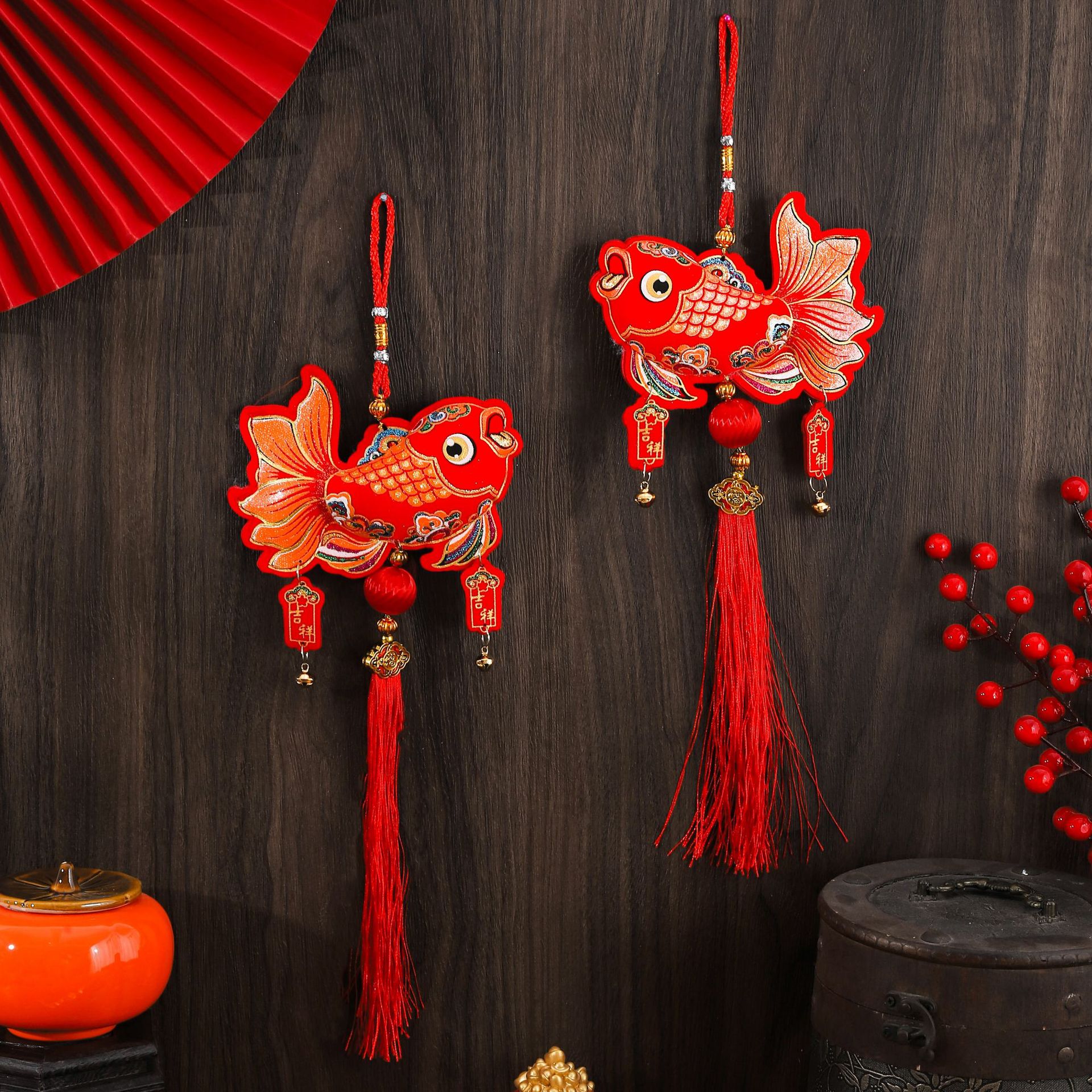 2026年辰年新作鯉魚小魚ペンダント、ベルベット中国結び飾り、春節新年装飾