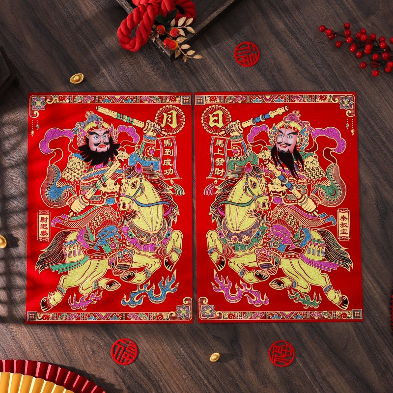 ベルベット製の福神・門神、粘着剤付きの福文字ステッカー、玄関飾り、春節年賀物卸売、玄関飾りステッカー