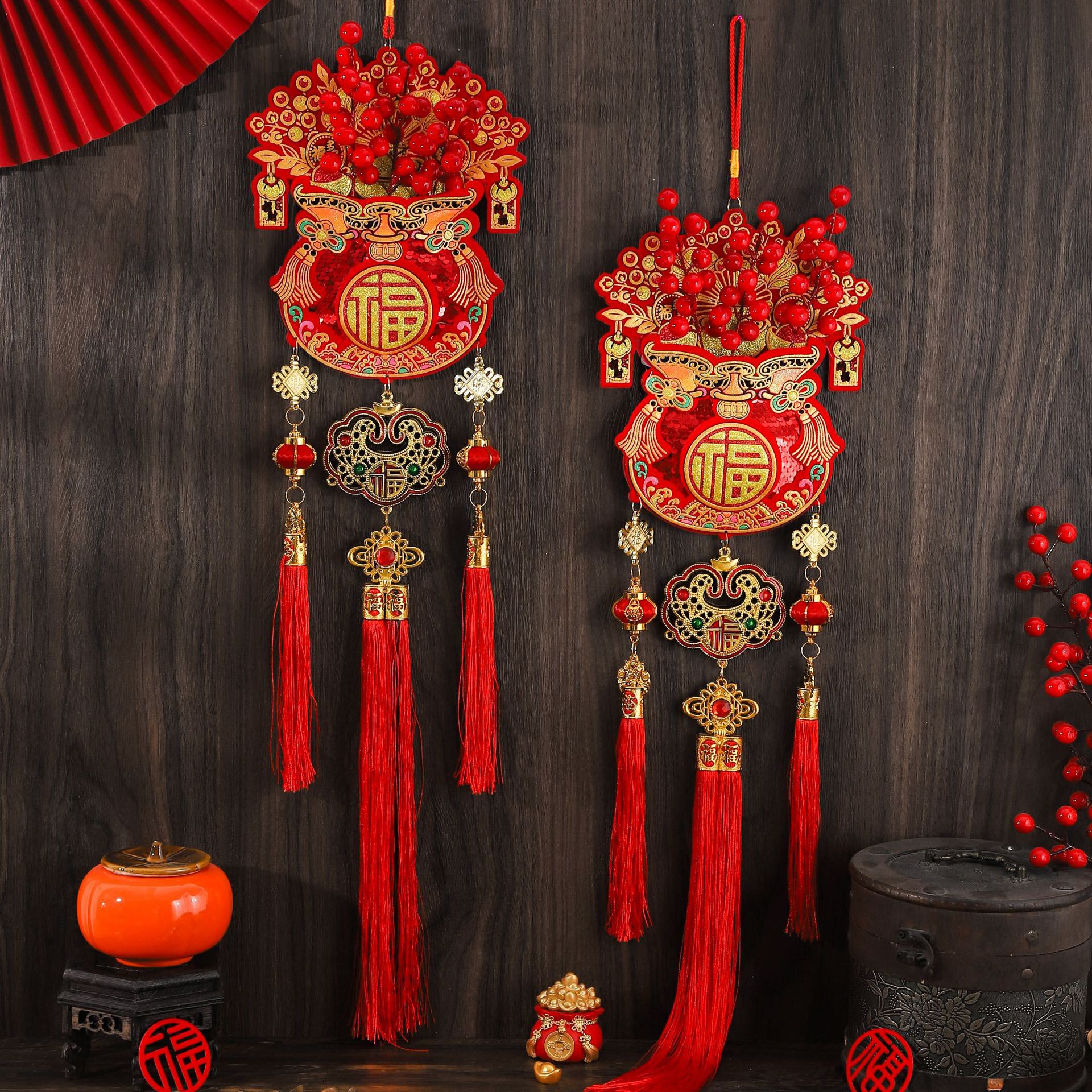 2026新款春节喜庆植绒印花福包红果挂串乔迁新居室内客厅装饰挂件