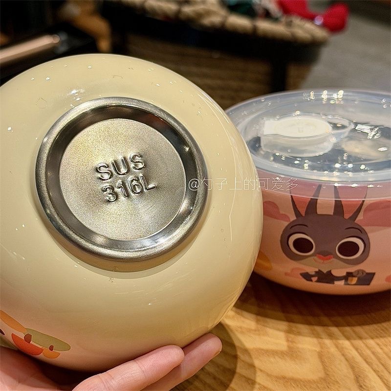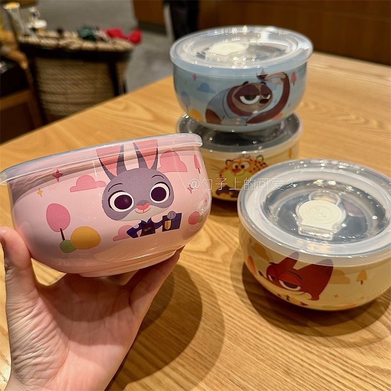 可爱疯狂动物城高颜值不锈钢316家用儿童饭碗带盖学生泡面碗餐具