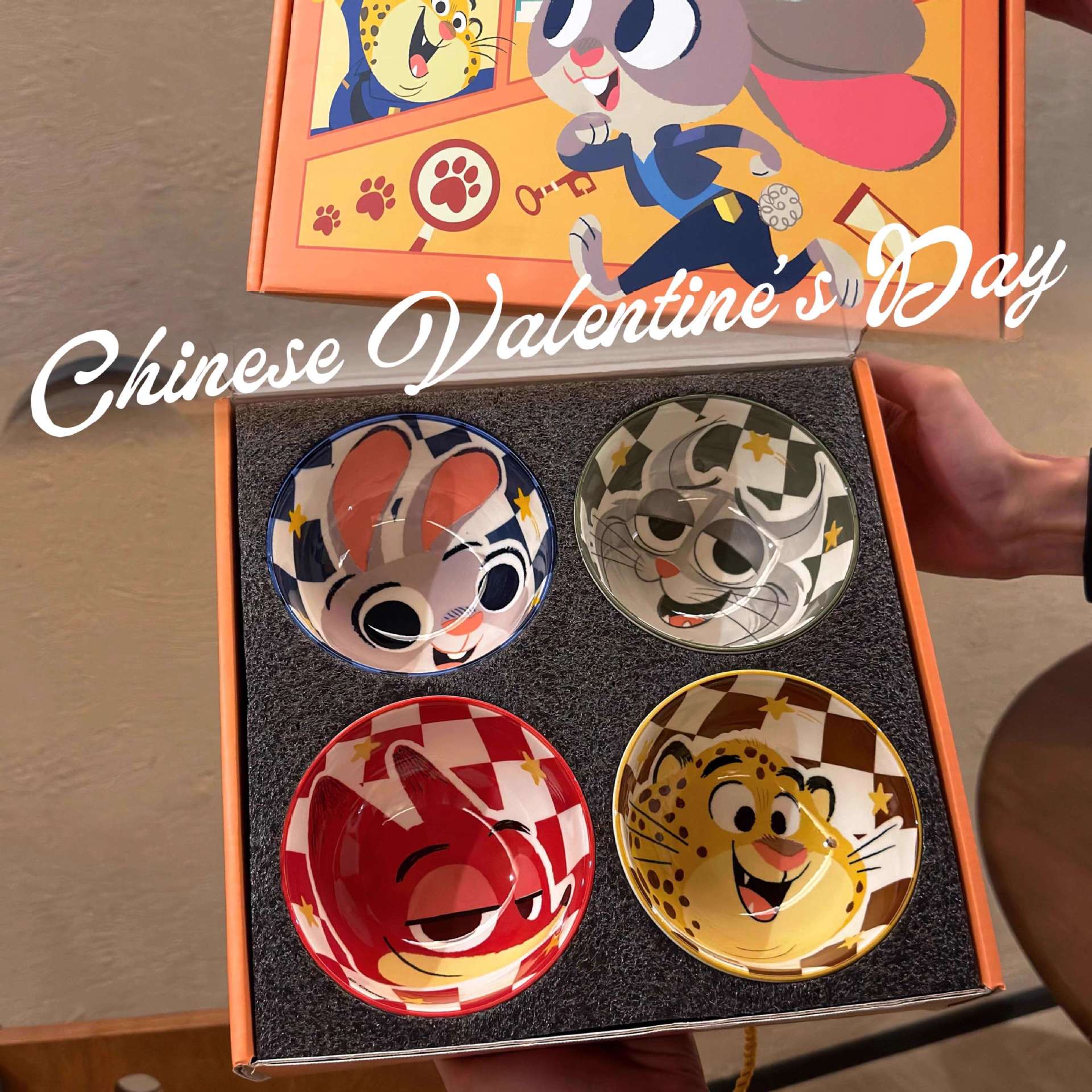 疯狂动物城卡通动物陶瓷碗礼盒装4只可爱餐具套装创意礼品甜品碗