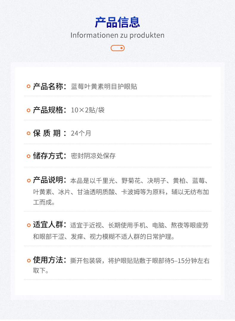 产品名称 蓝莓叶黄素明目护眼贴