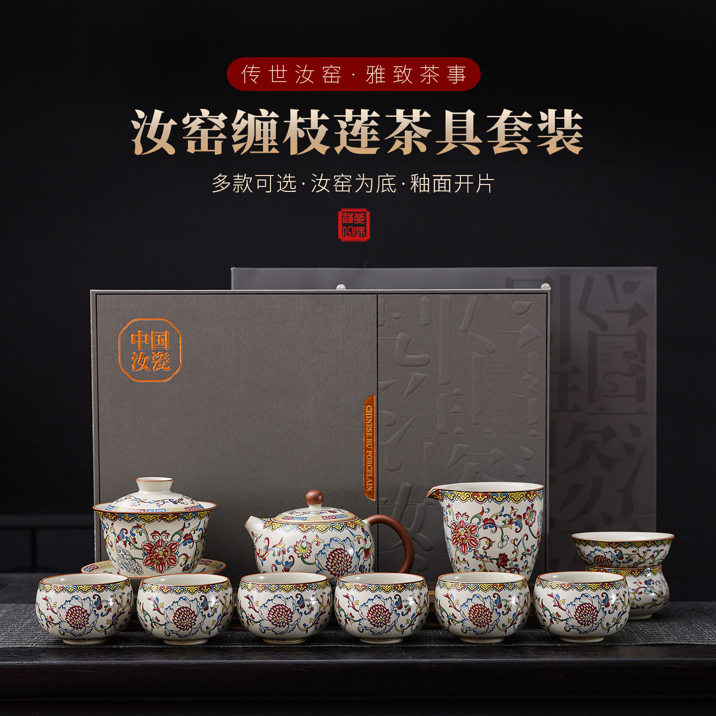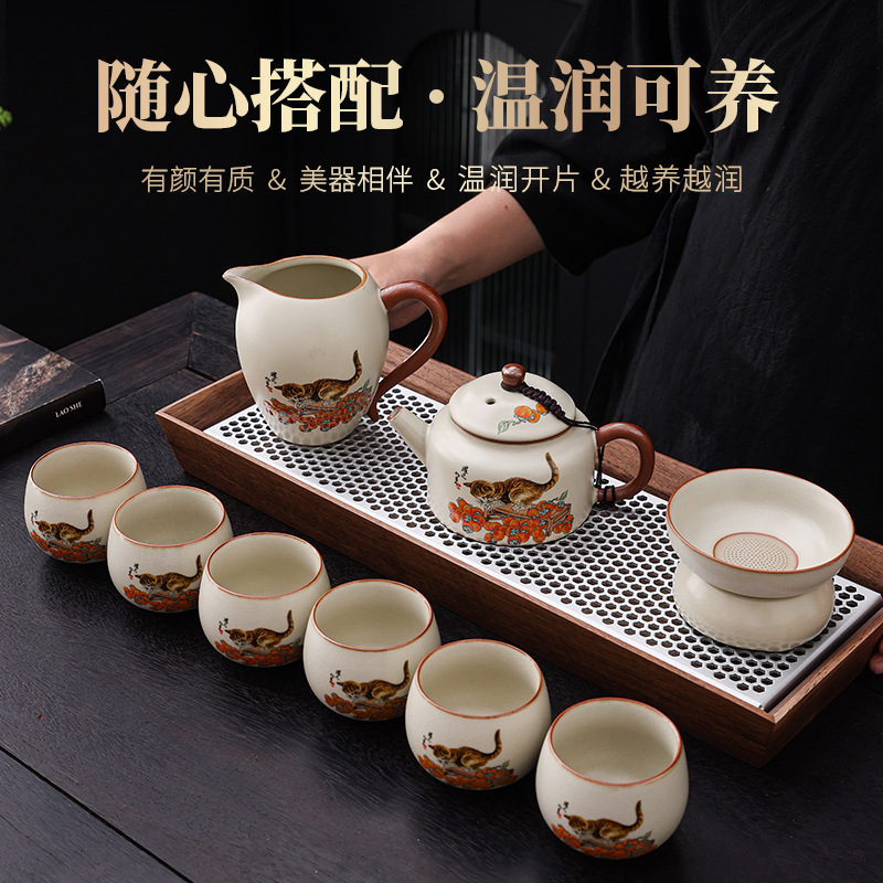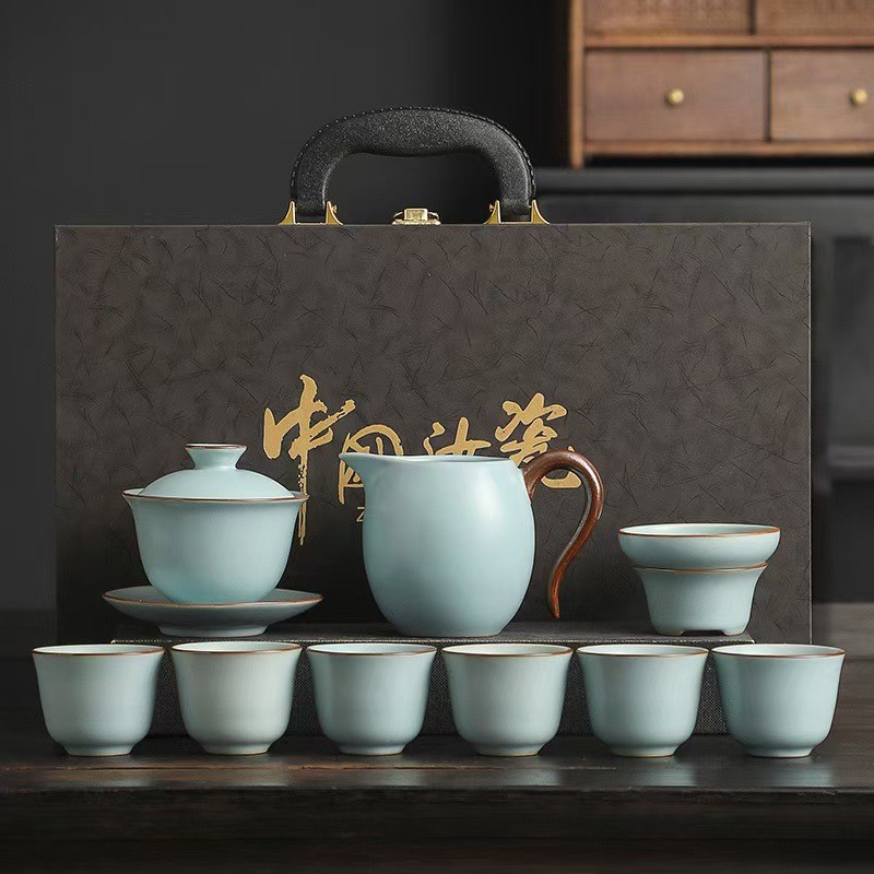 汝窯陶磁器茶器セット、フルセット、ギフトボックス入り、卸売、ロゴ印刷可能、ビジネス、モダン、シンプル
