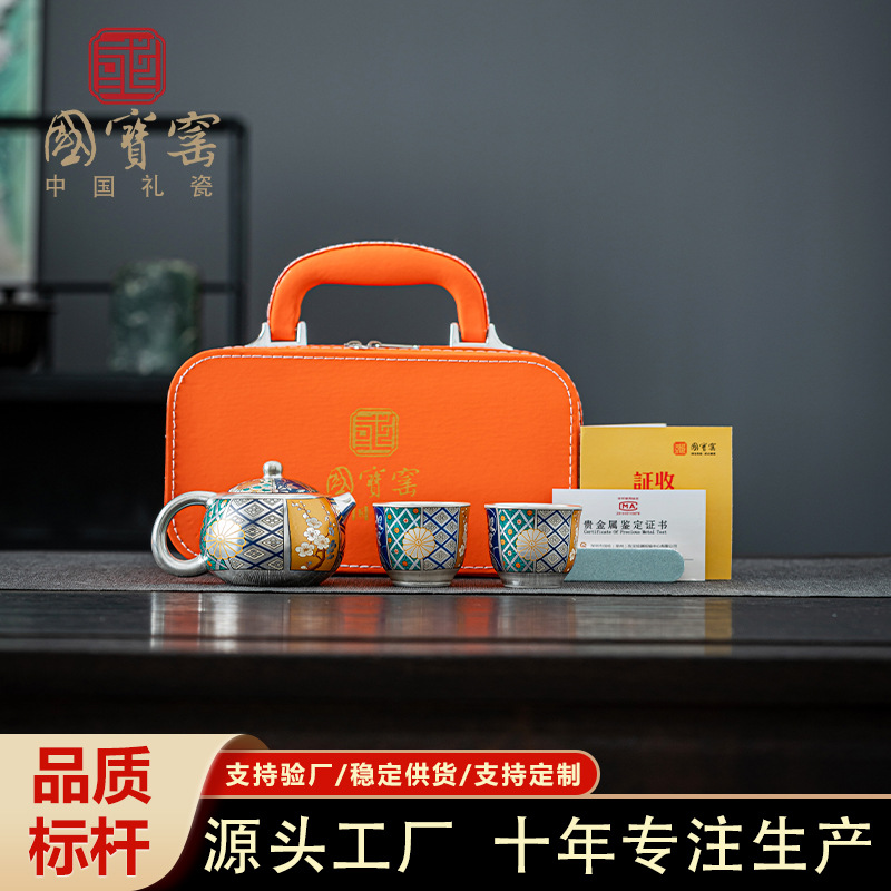 国宝窯高級銀メッキ功夫茶器セット、茶壺、茶碗、ギフトボックス入り、誕生日、新築祝い、会社ギフト、カスタムメイド