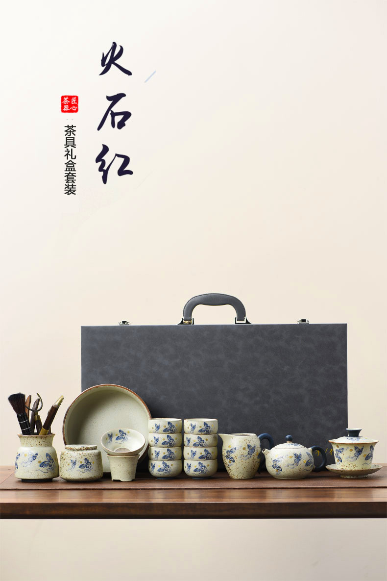 窑变茶杯功夫具套装茶杯家用茶具旅行茶便携式伴手礼户外陶瓷