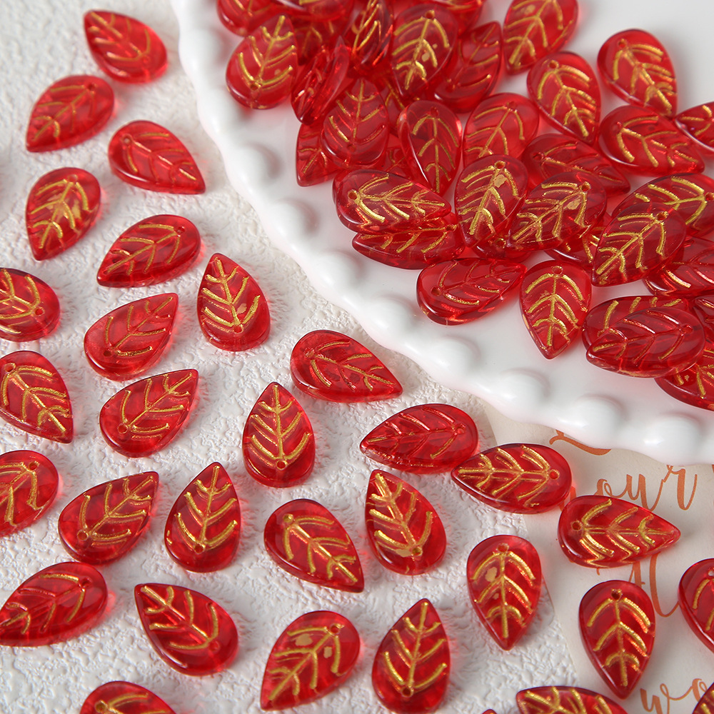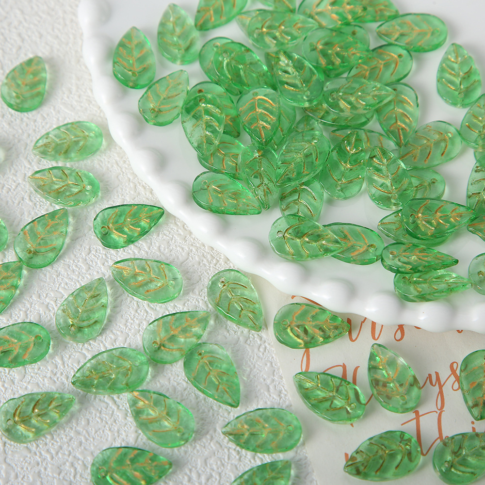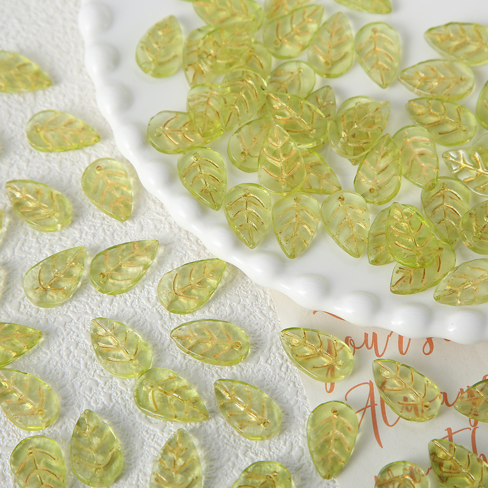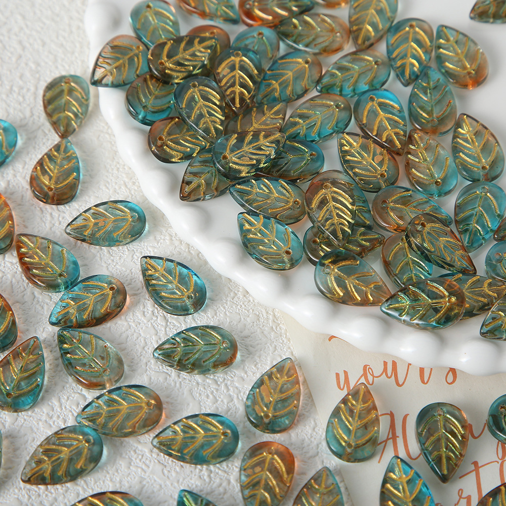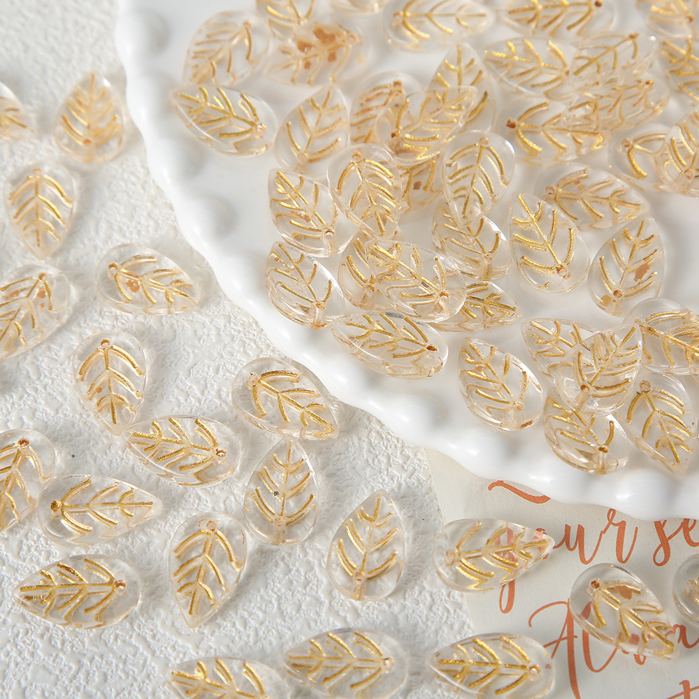描金树叶11x17捷克琉璃珠 DIY手工制作材料古风汉服水晶散珠配件