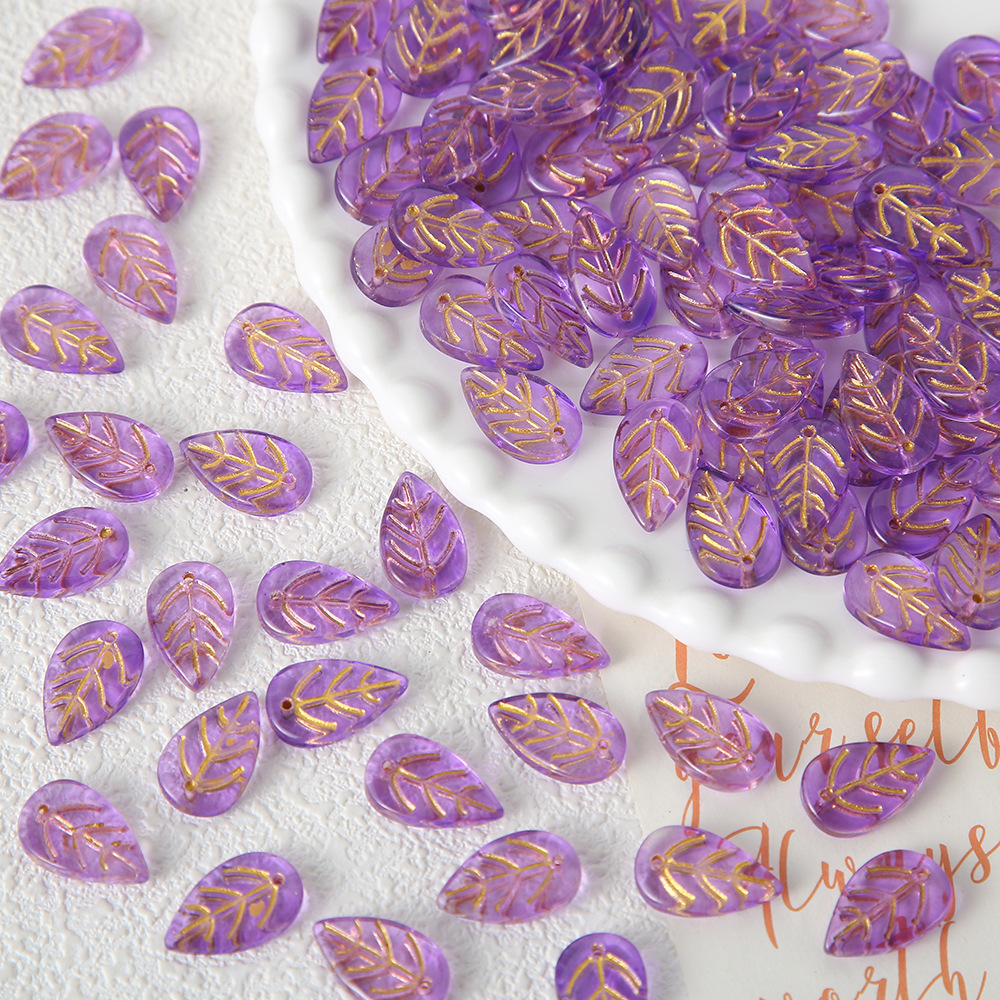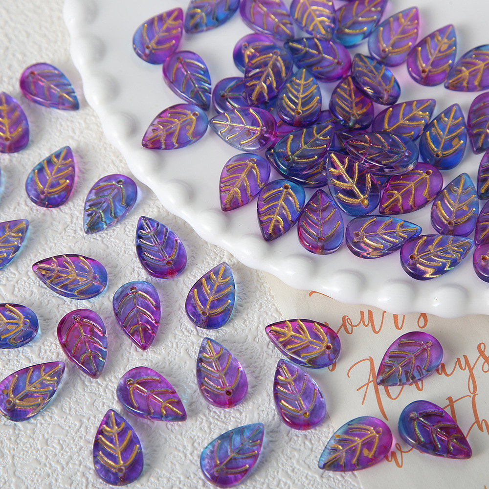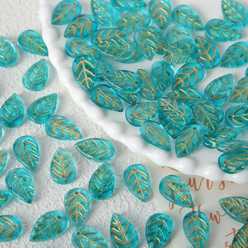 捷克琉璃横孔树叶描金古风叶子 手工diy手链发簪头饰材料配件散珠